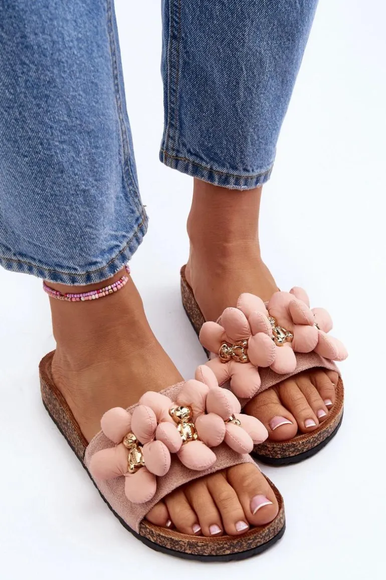 Klasyczne damskie klapki osadzone na masywnej, korkowej platformie. Z przodu ozdoby. Lekko profilowana wkładka jest wygodna w użytkowaniu nawet przez cały dzień. Nie czekaj dłużej i kup już dziś! Koniecznie powinnaś je mieć! Przy wyborze rozmiaru prosimy sugerować się tabelą rozmiarów.