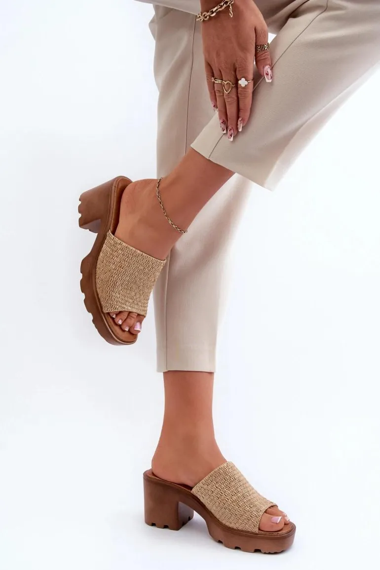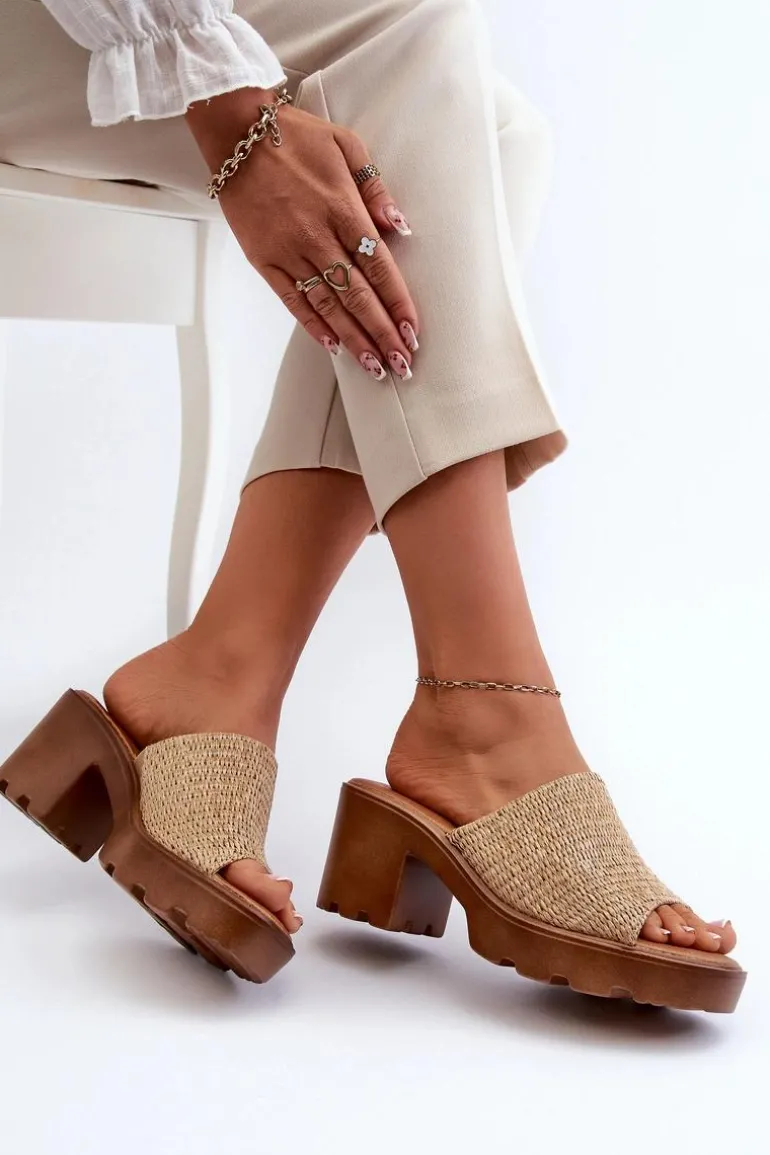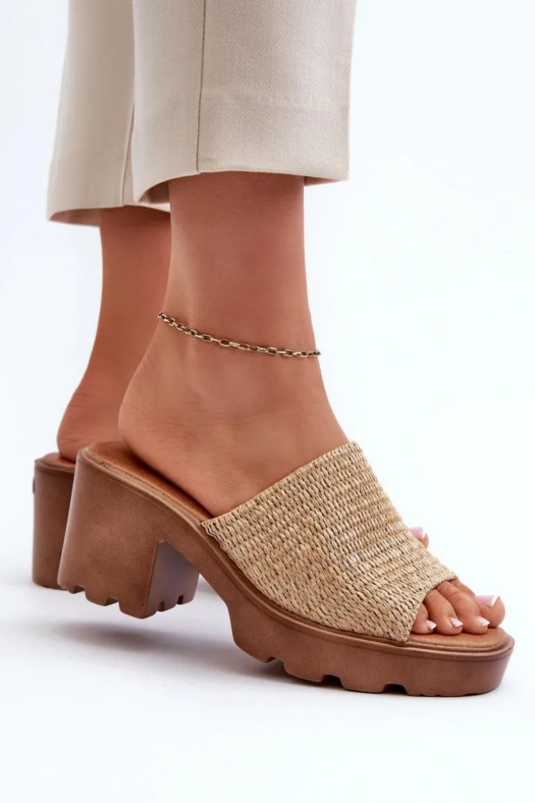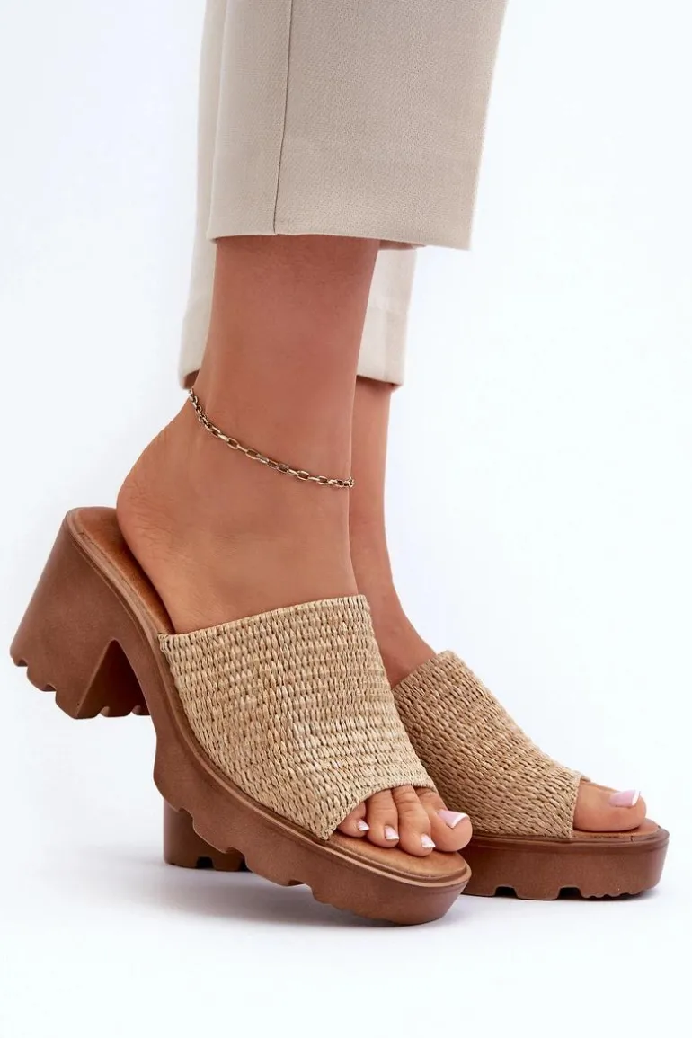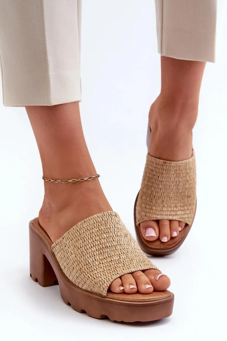 Klapki damskie z plecionką. Osadzone na masywnym obcasie, który gwarantuje stabilność podczas chodzenia. Miękka wkładka z efektem poduszki jest niezwykle wygodna podczas użytkowania. Doskonałe na wiele okazji, od codziennych spacerów po letnie spotkania ze znajomymi. Przy wyborze rozmiaru prosimy kierować się tabelą rozmiarów.
