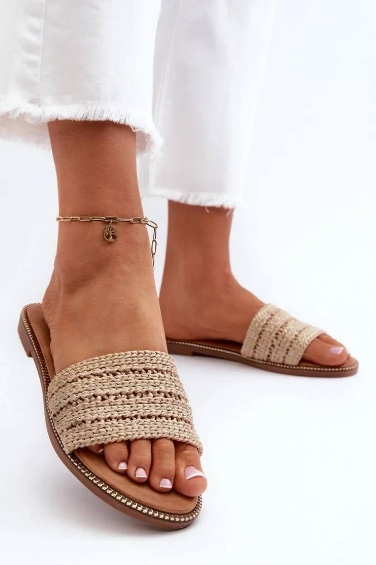 Klasyczne klapki damskie na płaskim obcasie to niezawodny wybór na letnie dni. Prosty design sprawia, że doskonale pasują do wielu letnich stylizacji. Z przodu szeroki pasek z plecionką. Te klapki są doskonałym wyborem dla kobiet ceniących zarówno styl, jak i komfort. Przy wyborze rozmiaru prosimy sugerować się tabelą rozmiarów.
