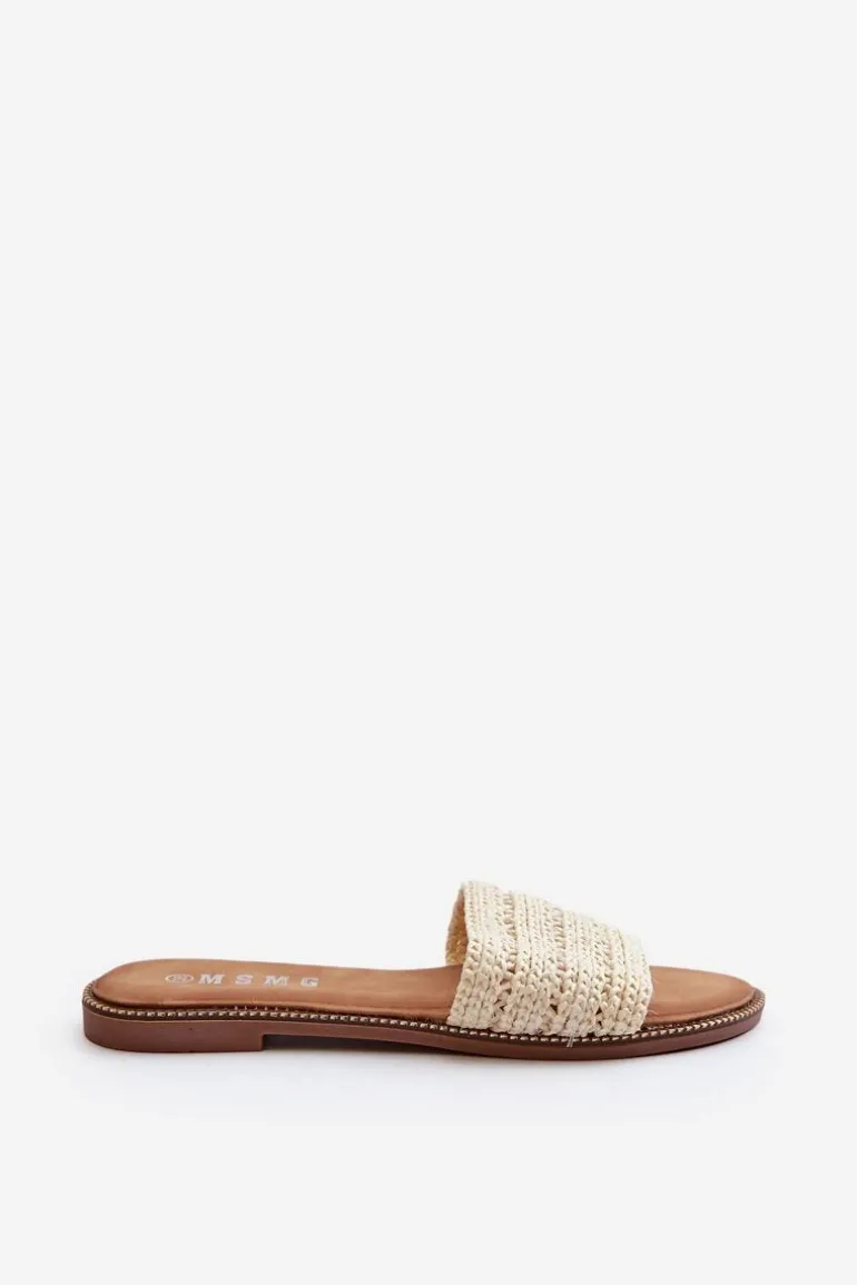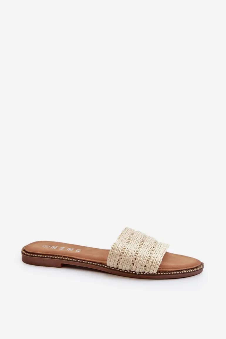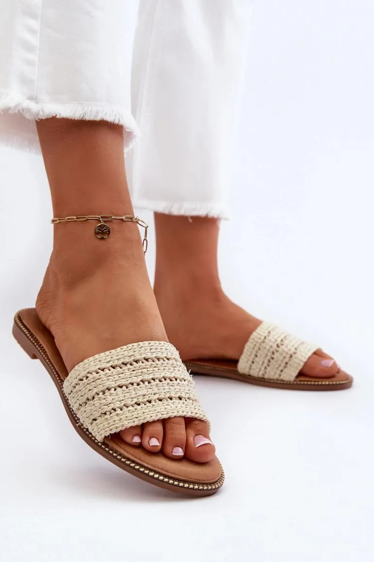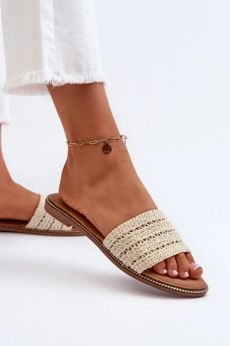 Klapki Damskie Z Plecionką Na Płaskim Obcasie Jasnobeżowe Radians