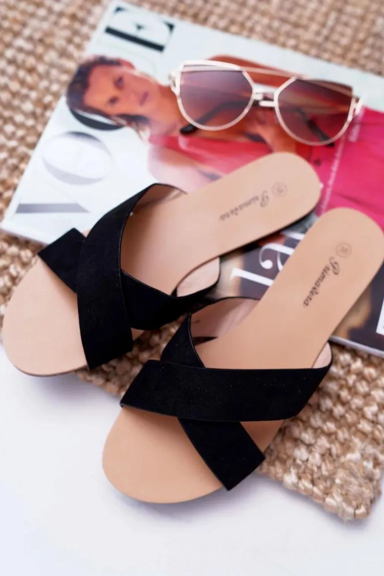 Klapki Damskie Zamszowe Czarne Fenefe