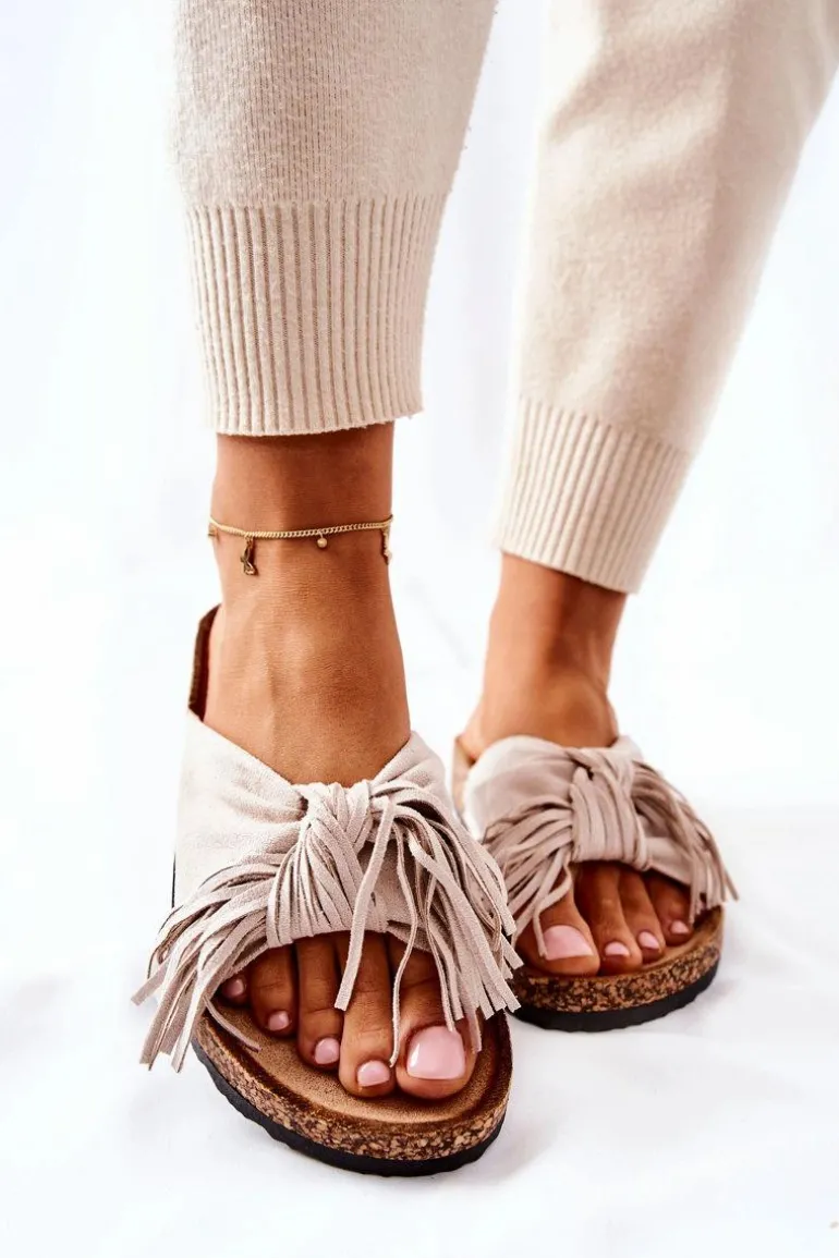 Klapki Na Korkowej Podeszwie Beżowe Taryne