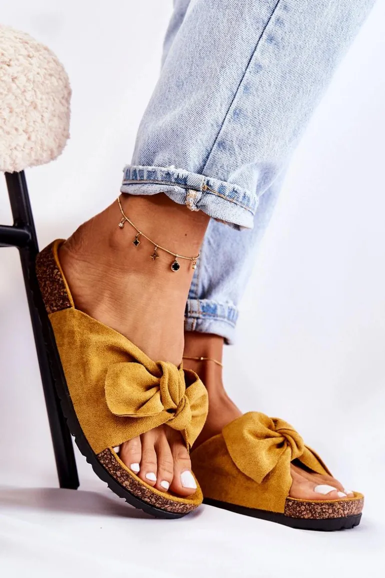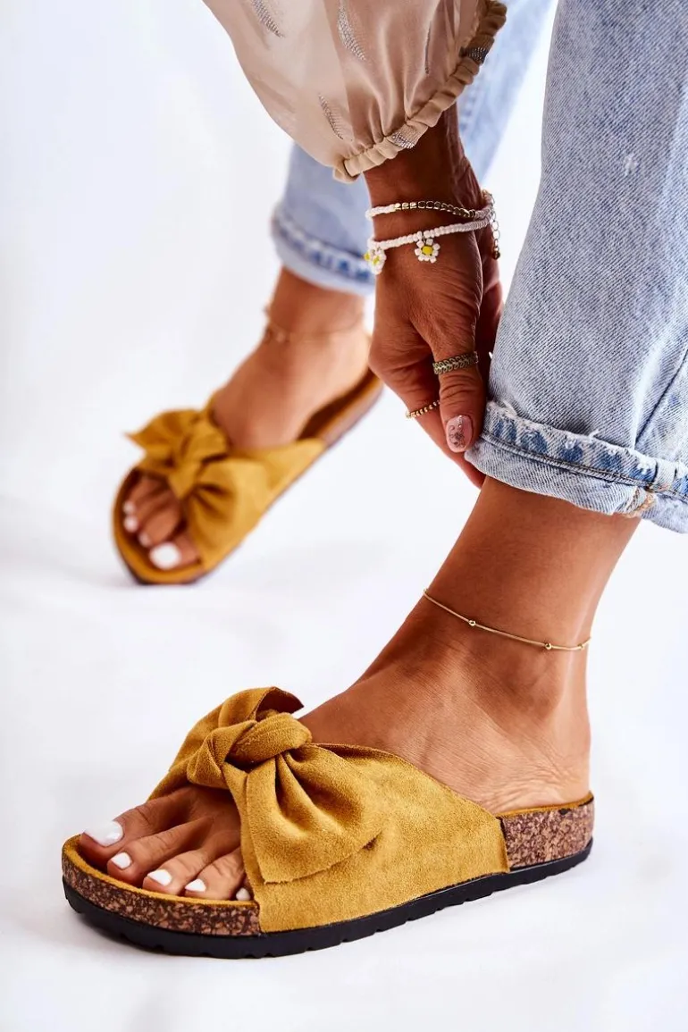 Klapki Na Korkowej Podeszwie Ciemne Żółte Wendy