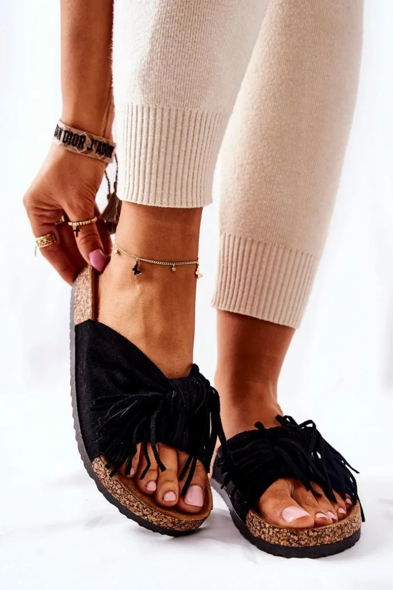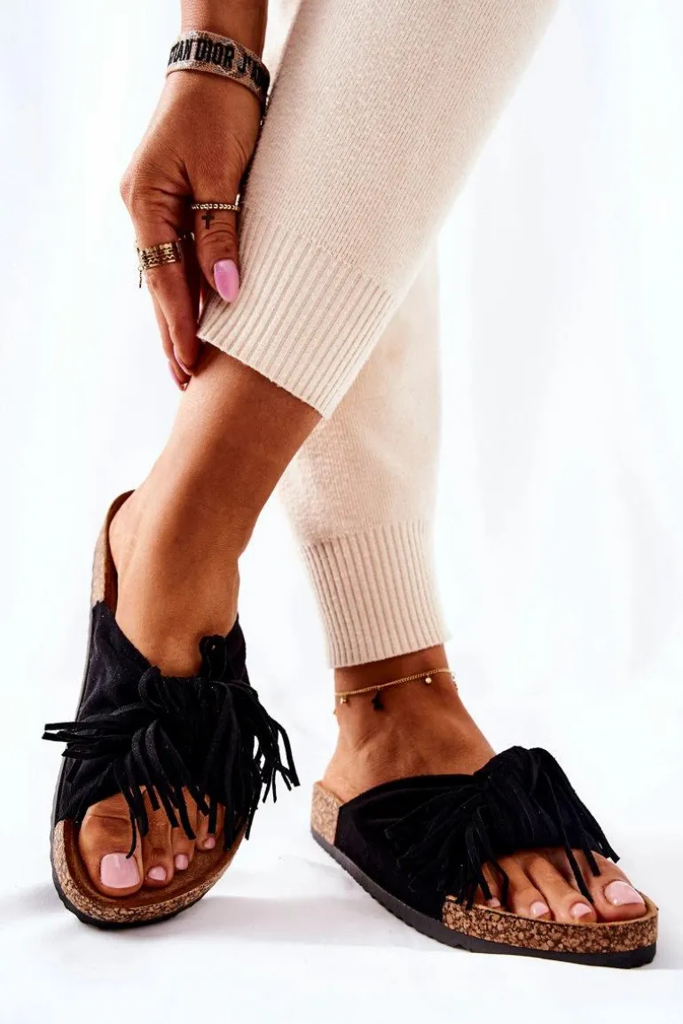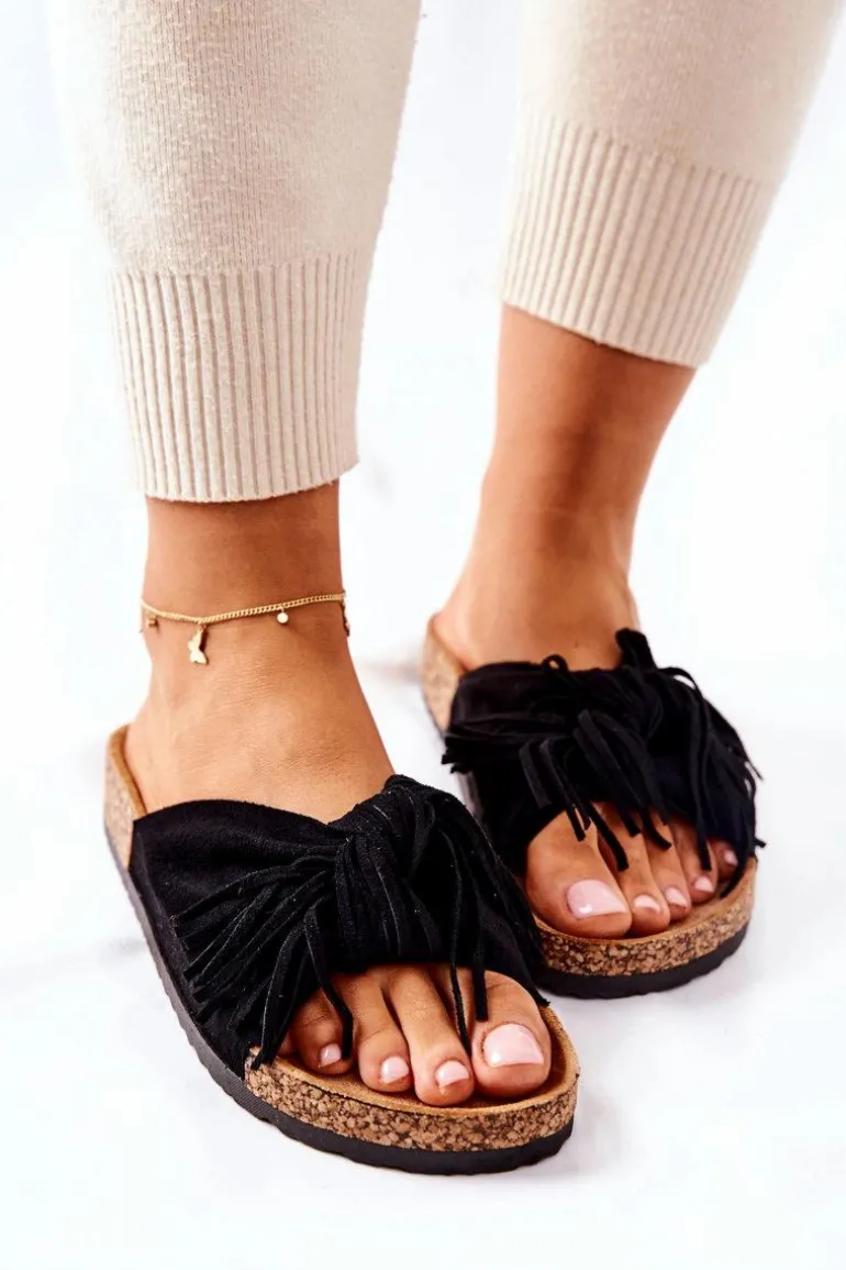 Klapki Na Korkowej Podeszwie Czarne Taryne