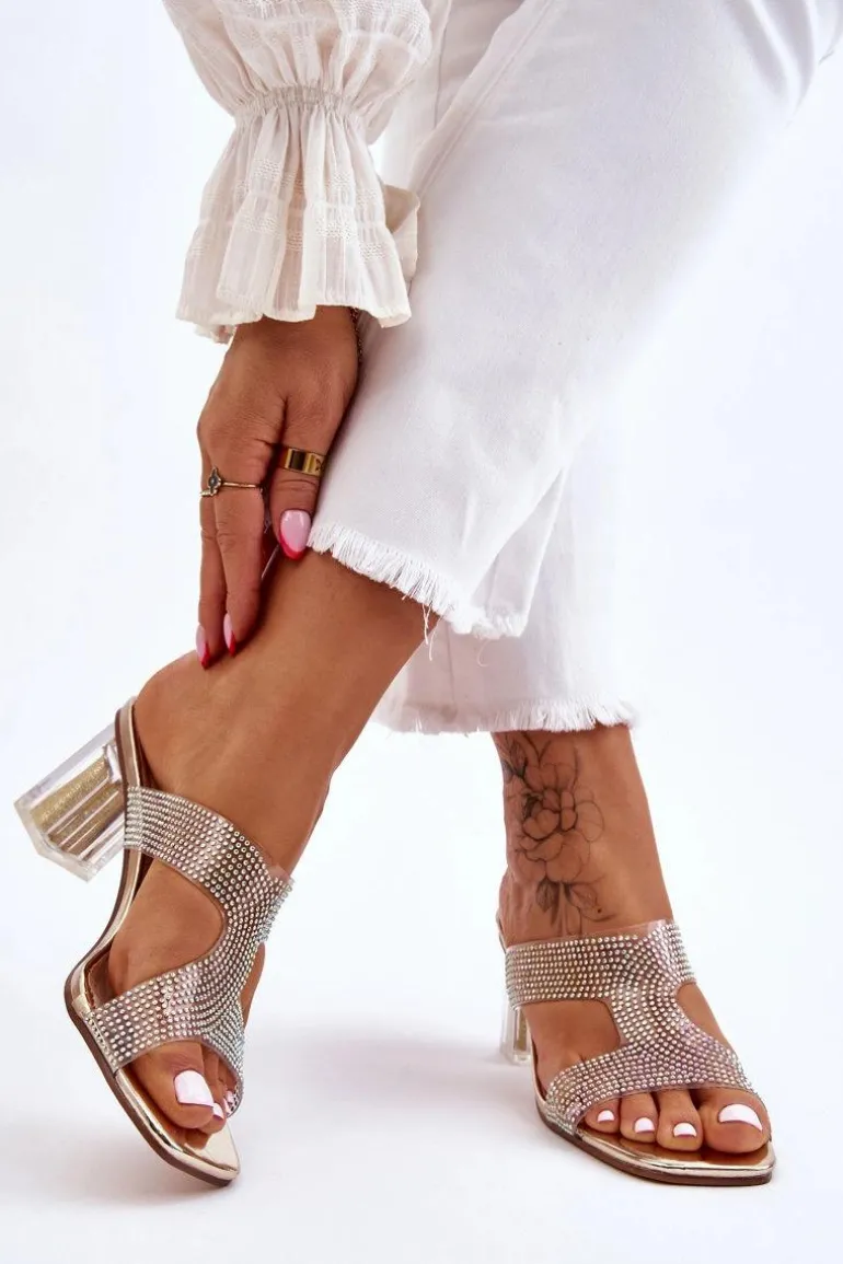 Klapki Na Obcasie Z Dżetami Złote Jaxen