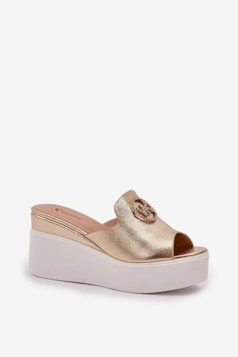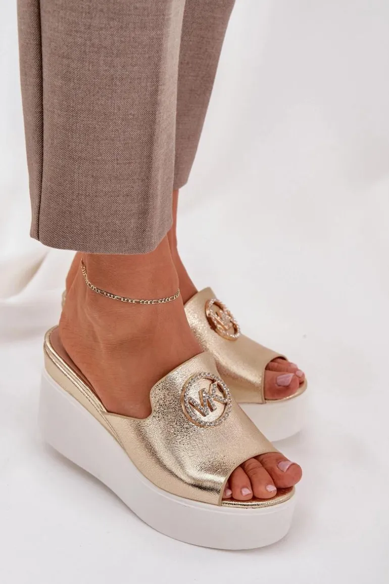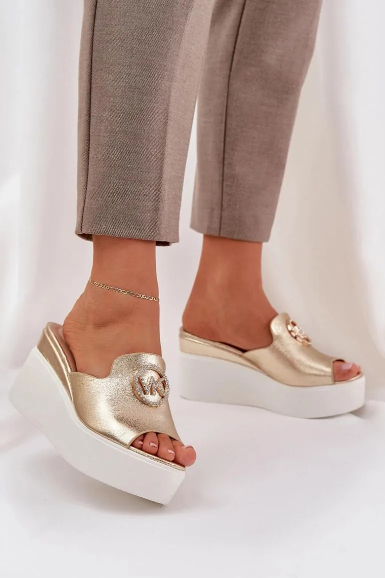Klapki Na Platformie I Koturnie Z Ozdobą Złote Nanessia