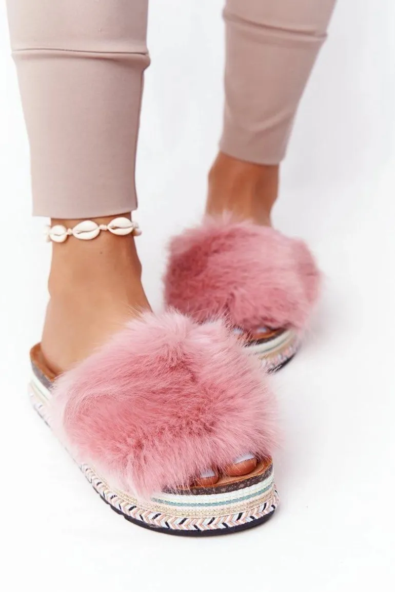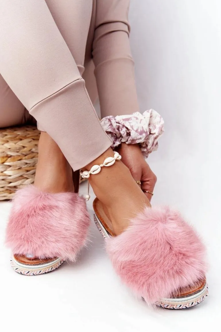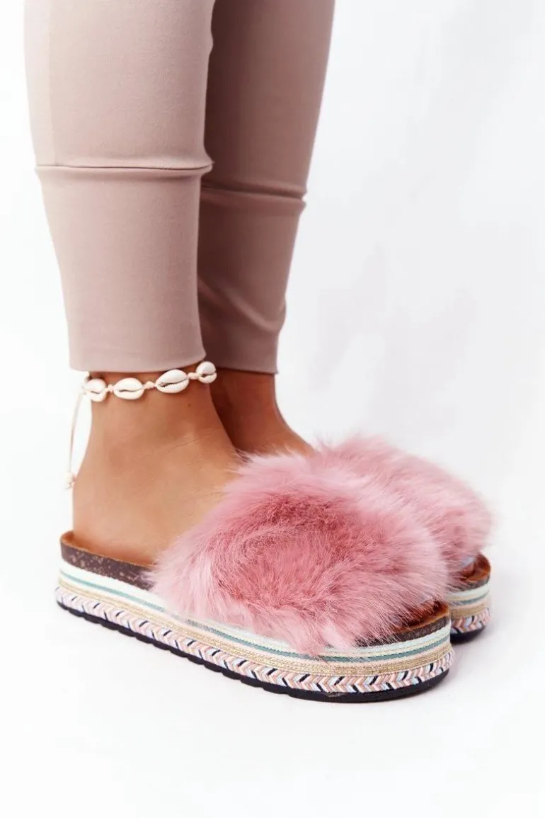 Klapki Na Platformie z Futerkiem Różowe Adventure