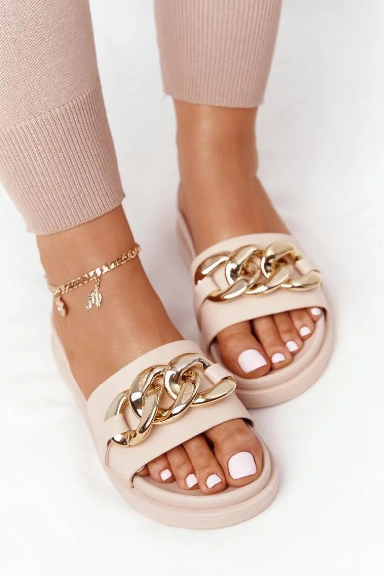 Klapki Na Platformie Z Łańcuchem Nude Vacation