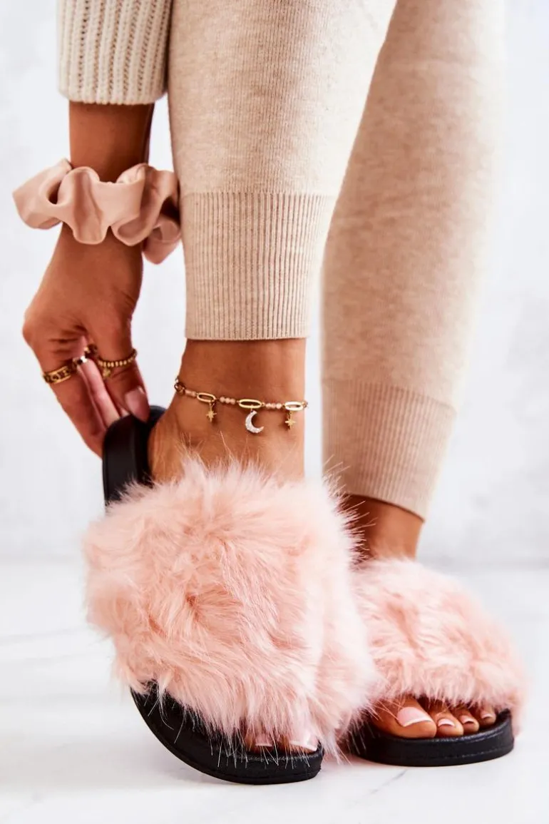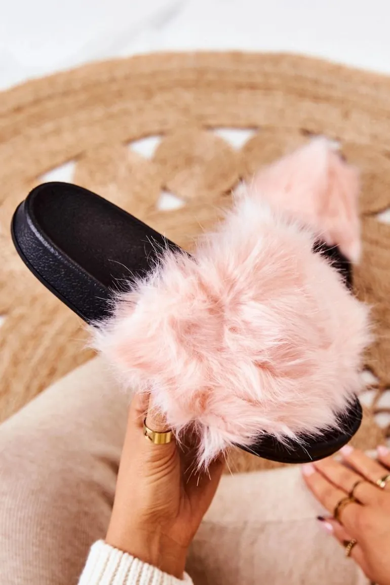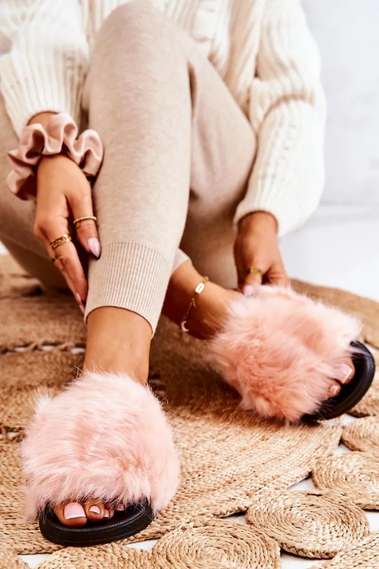 Klapki Z Futerkiem Gumowe Jasnoróżowe Pollie