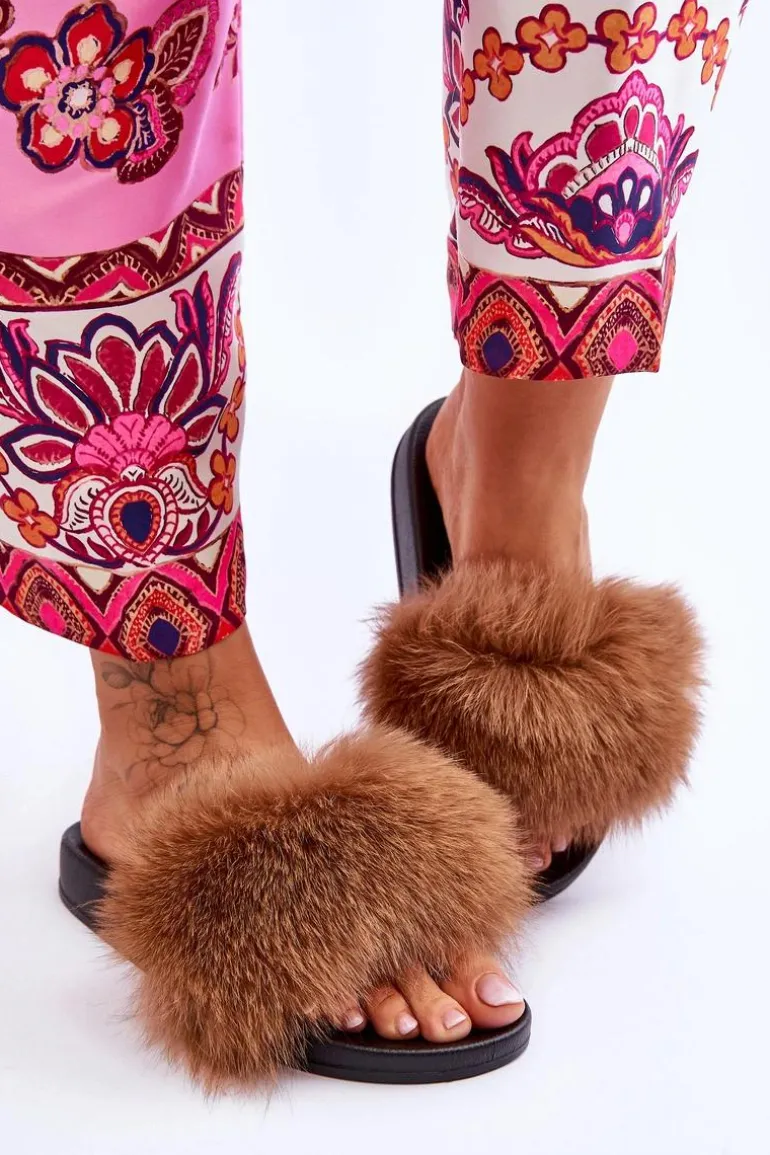 Klapki damskie z naturalnym futerkiem. Podeszwa wykonana jest z gumowego, lekkiego tworzywa. Delikatnie profilowana wkładka zadba o Twój komfort.