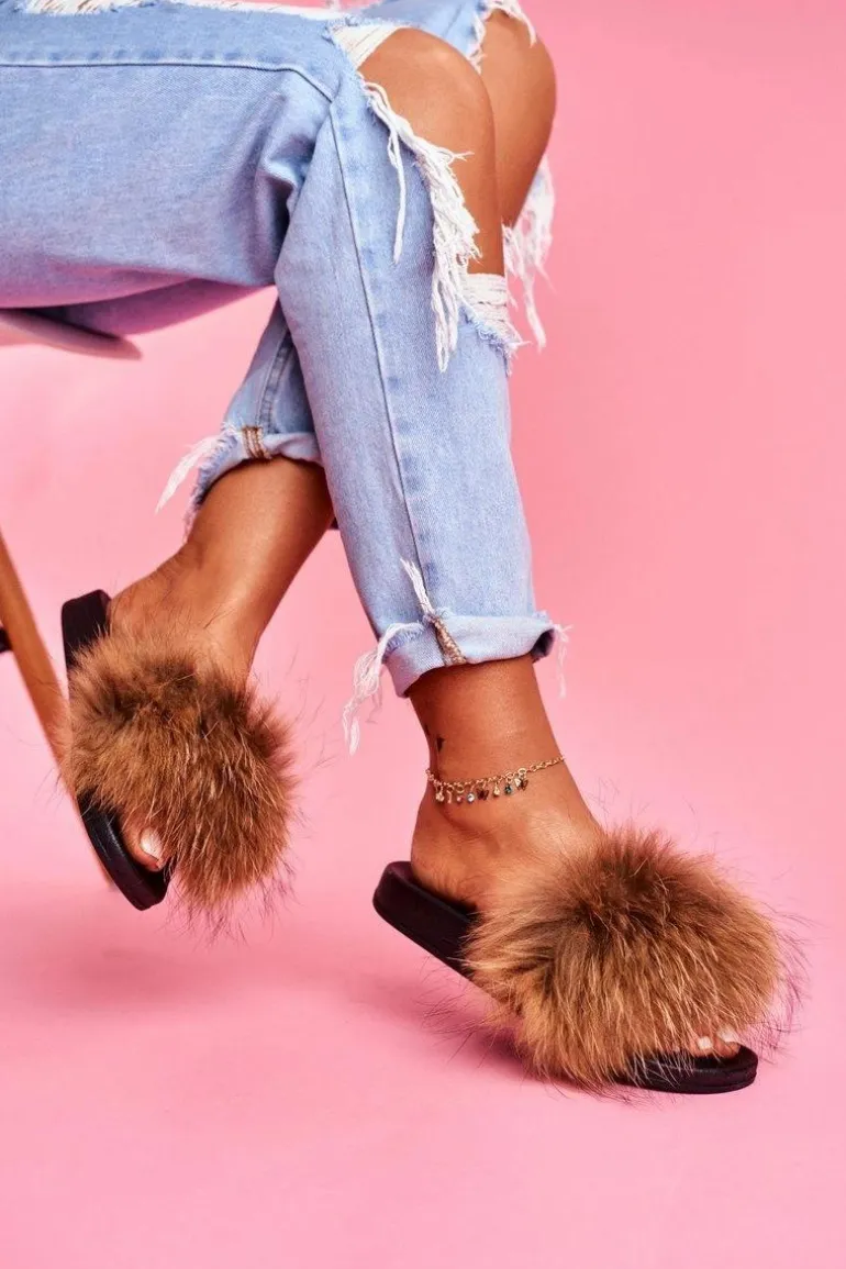 Klapki damskie z naturalnym futerkiem. Podeszwa wykonana jest z gumowego, lekkiego tworzywa. Delikatnie profilowana wkładka zadba o Twój komfort.