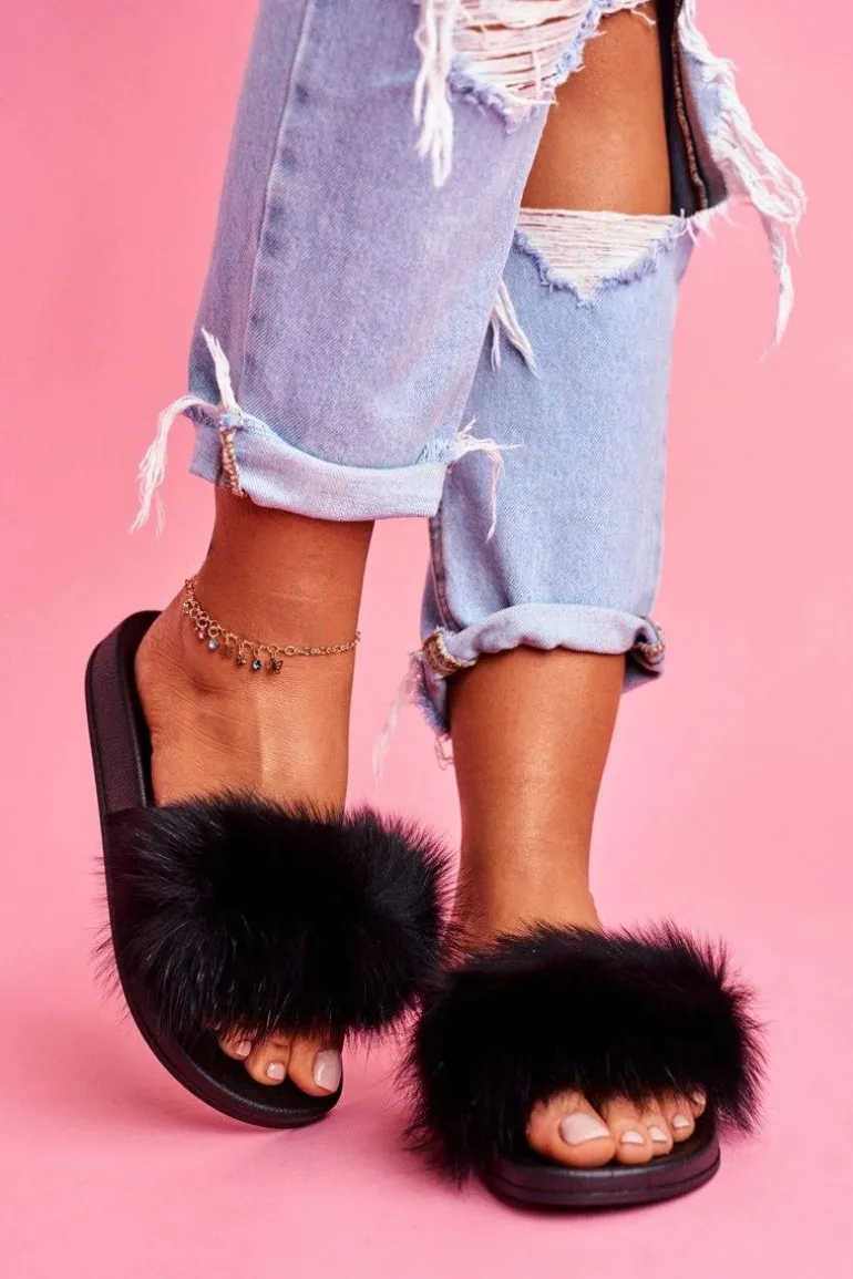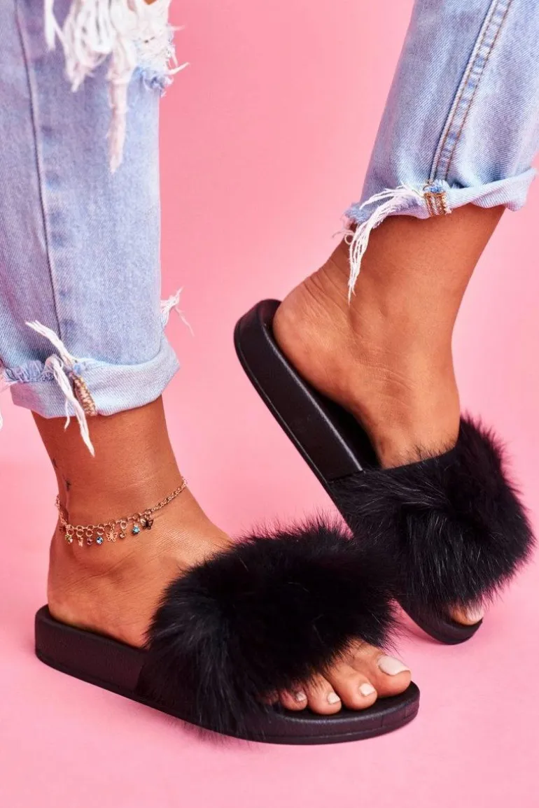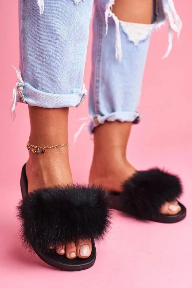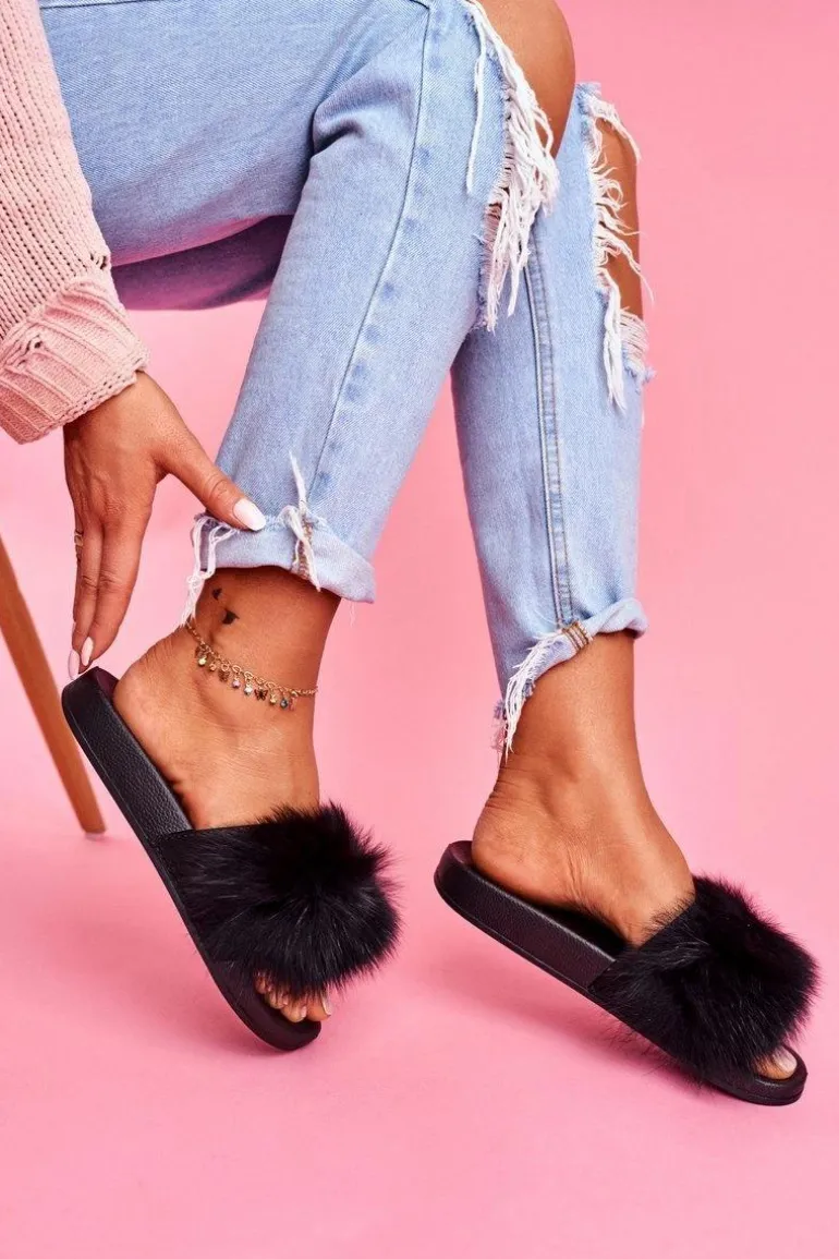 Klapki damskie z naturalnym futerkiem. Podeszwa wykonana jest z gumowego, lekkiego tworzywa. Delikatnie profilowana wkładka zadba o Twój komfort.