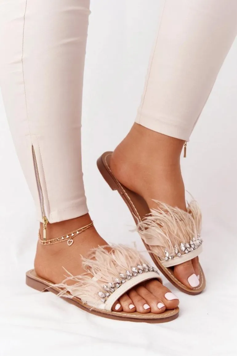 Klapki damskie marki LU BOO ozdobione piórami oraz srebrnymi kamieniami. Klapki to świetna propozycja dla kobiet ceniących sobie komfort w letnie dni! Koniecznie sprawdź całą naszą kolekcję butów marki LU BOO. Przy wyborze rozmiaru prosimy sugerować się tabelą rozmiarów.