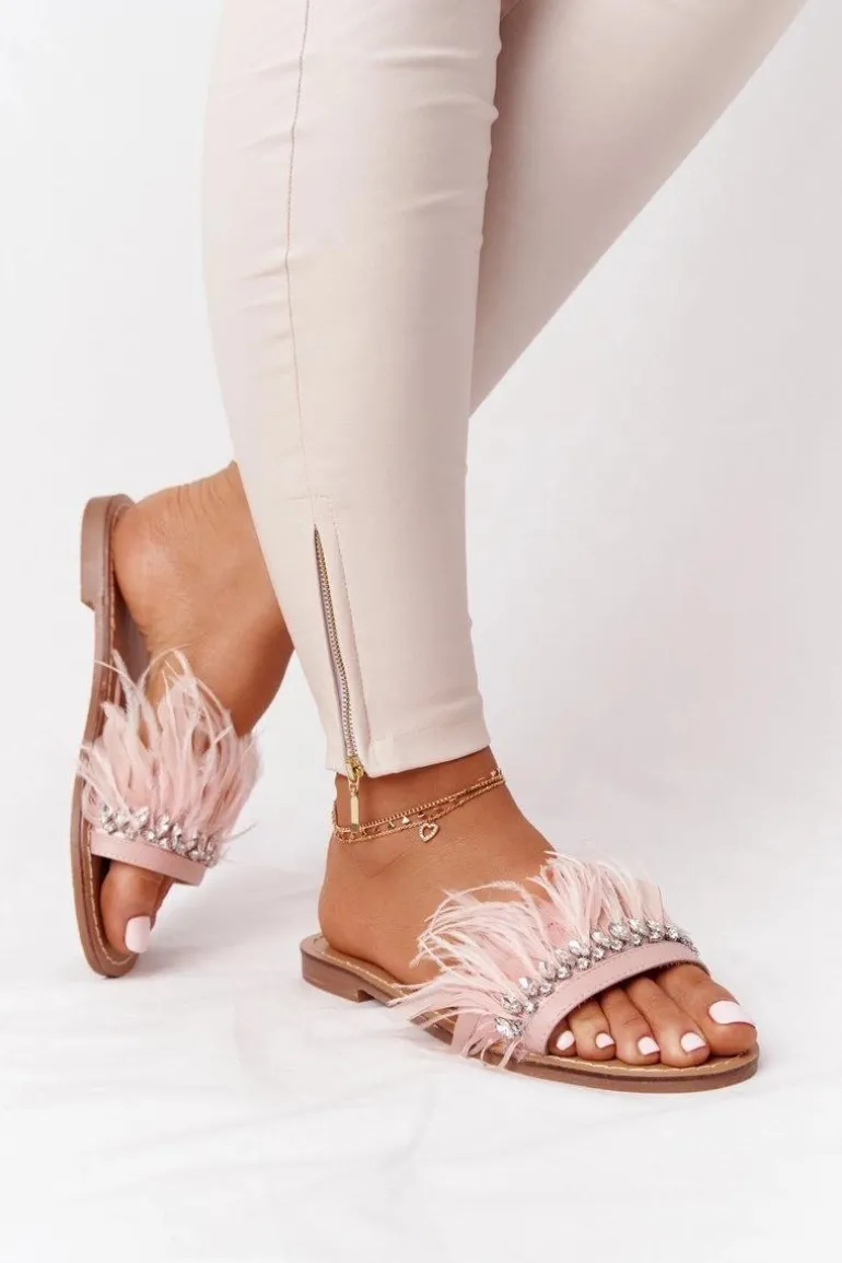 Klapki damskie marki LU BOO ozdobione piórami oraz srebrnymi kamieniami. Klapki to świetna propozycja dla kobiet ceniących sobie komfort w letnie dni! Koniecznie sprawdź całą naszą kolekcję butów marki LU BOO. Przy wyborze rozmiaru prosimy sugerować się tabelą rozmiarów.