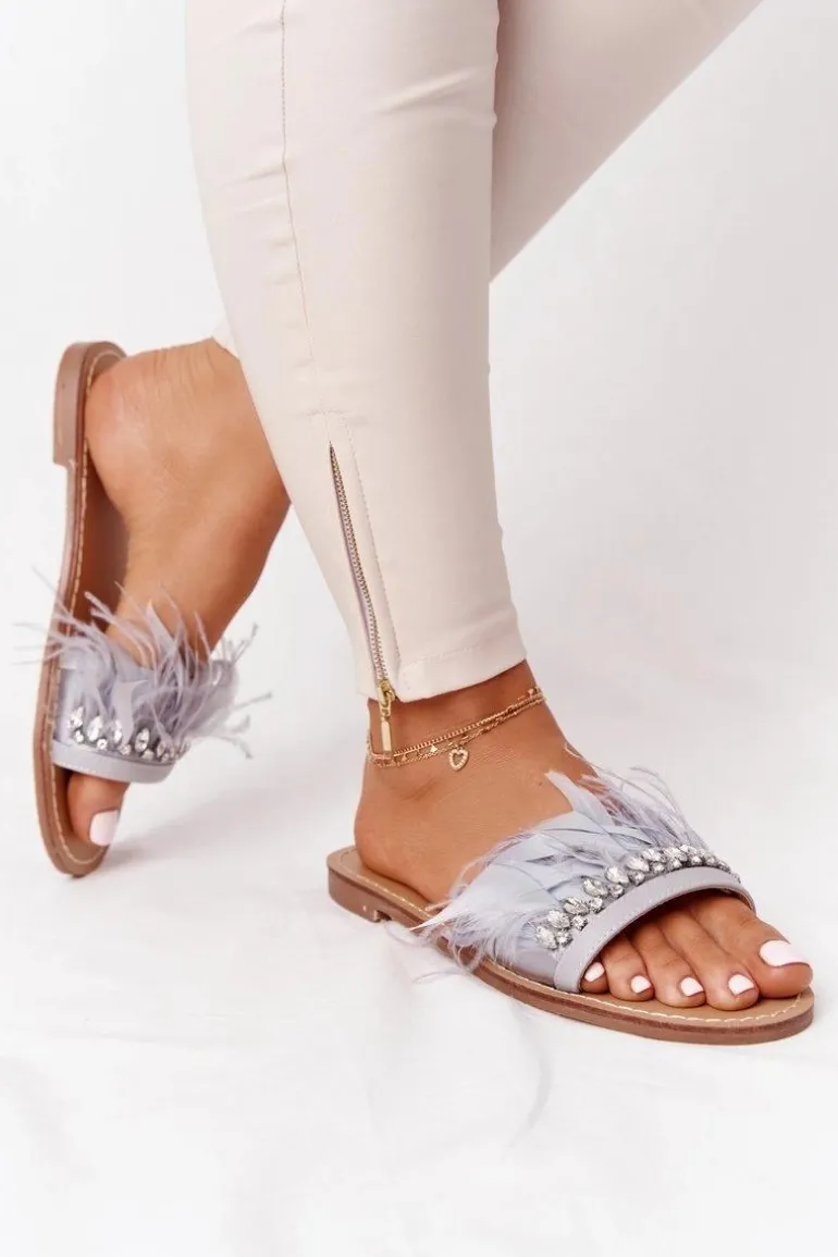 Klapki Z Piórami Lu Boo Szare