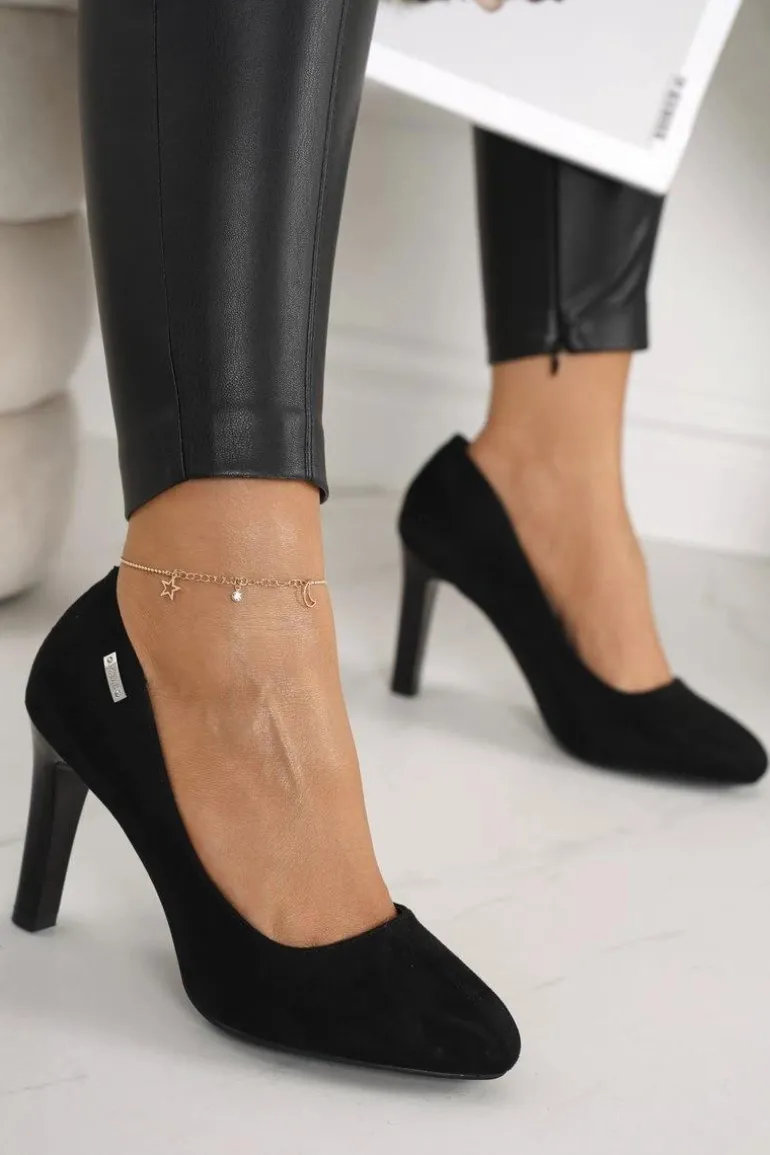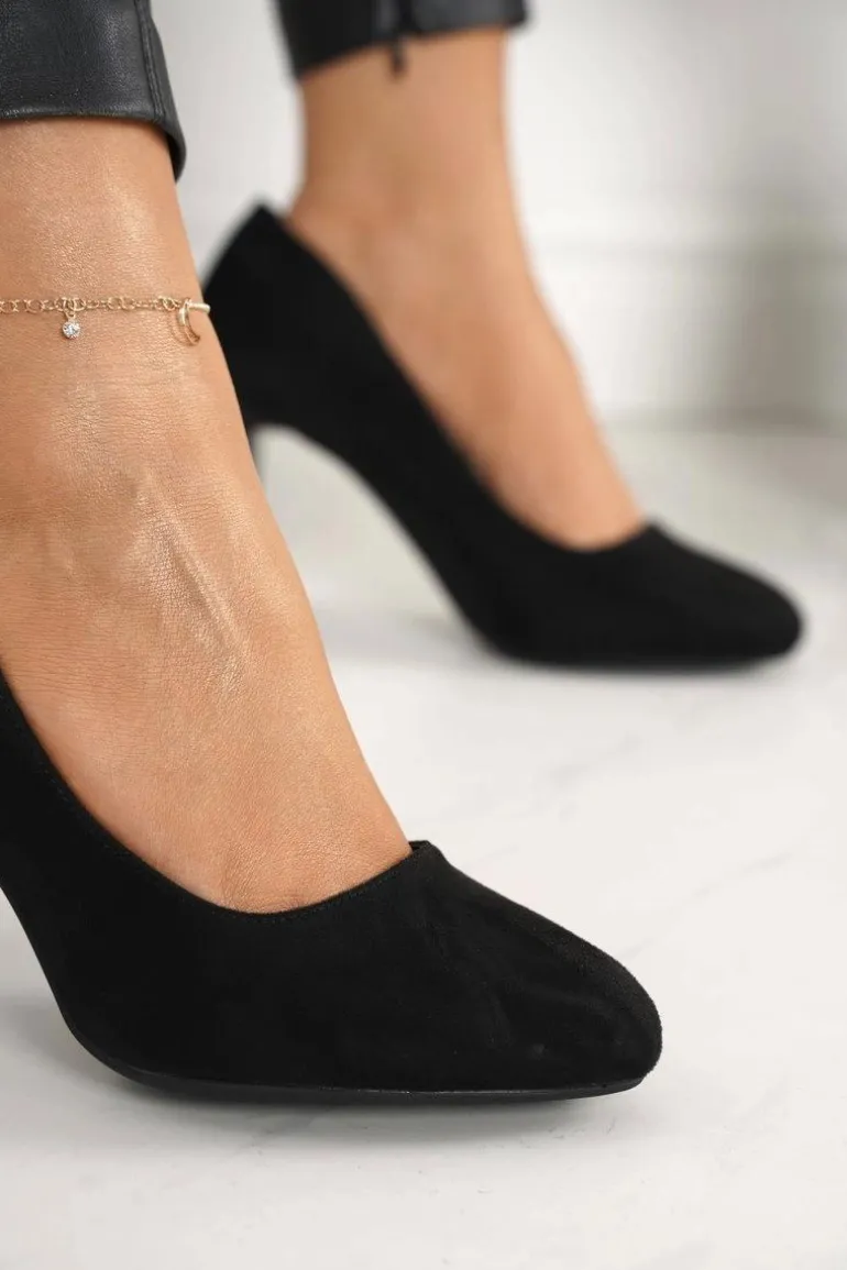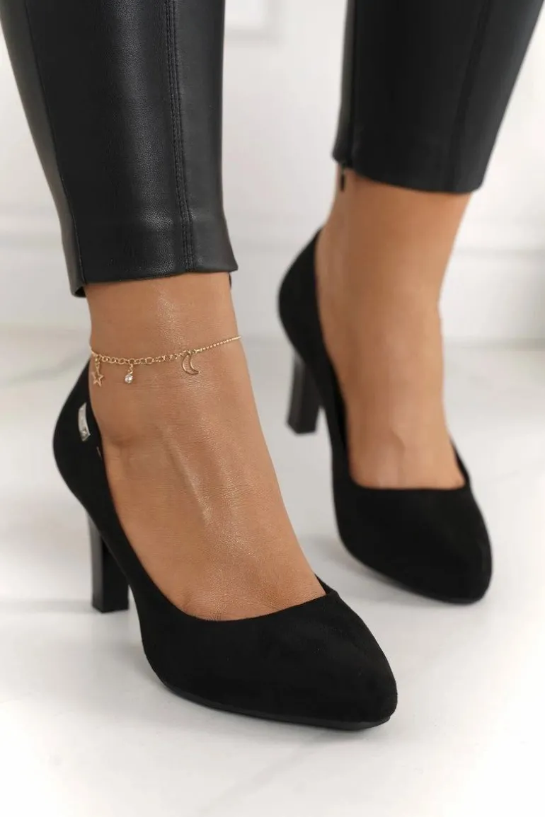 Klasyczne Czółenka Na Słupku Zamszowe Czarne Eleanor