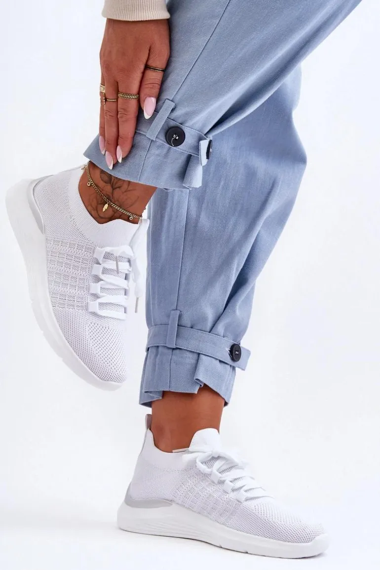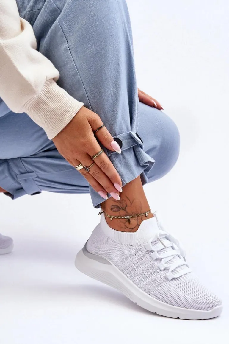 Klasyczne, skarpetkowe sportowe buty damskie zostały wykonane z przewiewnego materiału. Cholewka do kostki. Wsuwane z ozdobnym wiązaniem na górze. Buty zostały osadzone na platformie z gumowego tworzywa. Model wygodny w użytkowaniu. Przy wyborze rozmiaru prosimy kierować się tabelą rozmiarów.