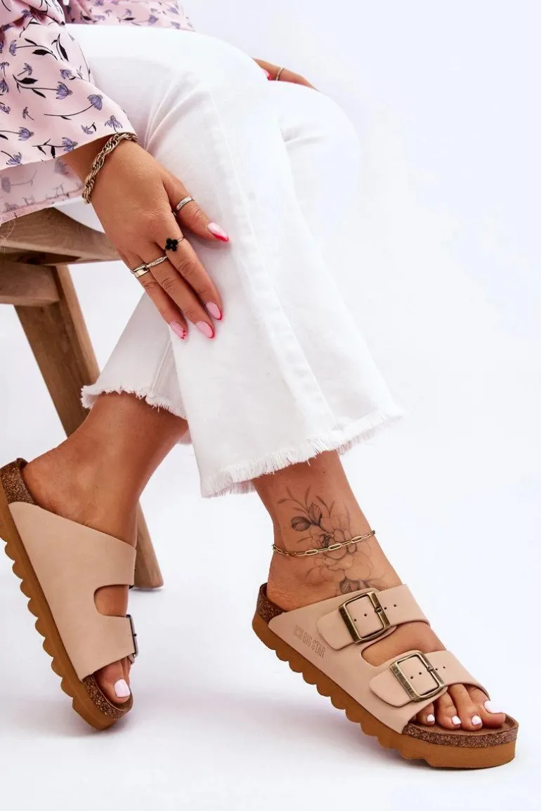 Klasyczne klapki marki Big Star z regulowanymi paskami zapinanymi na sprzączki. Wkładka wykonana z eko zamszu jest profilowana. Cholewka natomiast została wykonana z eko skóry. Osadzone na niewysokiej platformie. Ten model powinnaś mieć w swojej szafie! Przy wyborze rozmiaru prosimy sugerować się tabelą rozmiarów.
