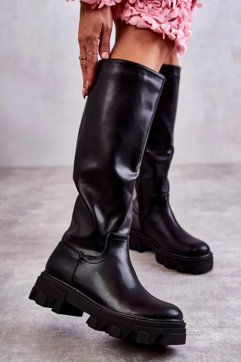 Klasyczne Damskie Kozaki Do Kolana Czarne Clarisa