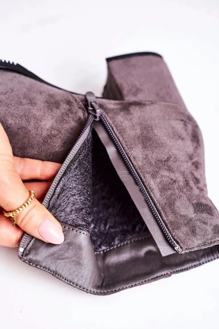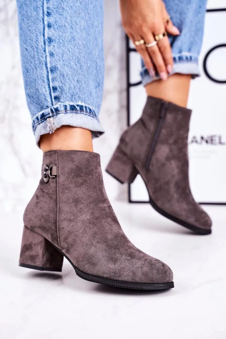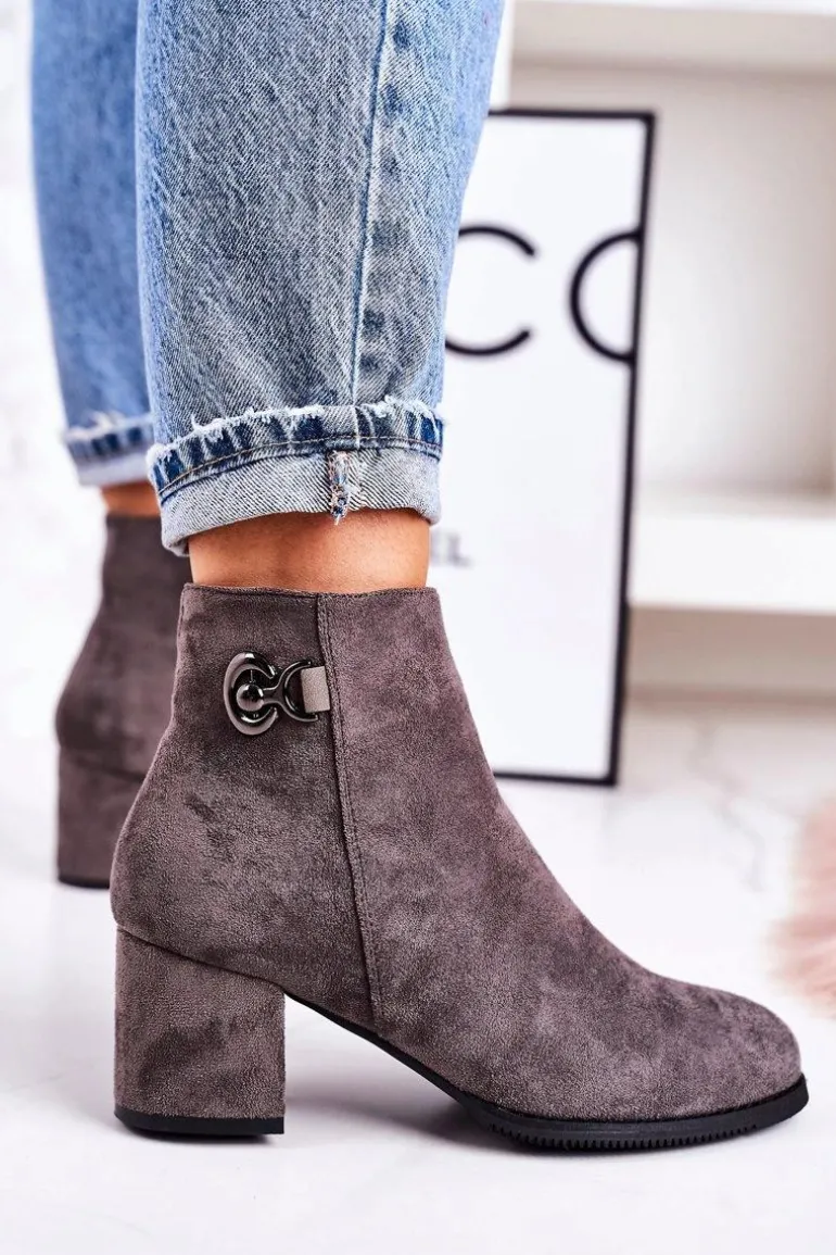 Klasyczne Damskie Ocieplane Botki Na Słupku Szare Success