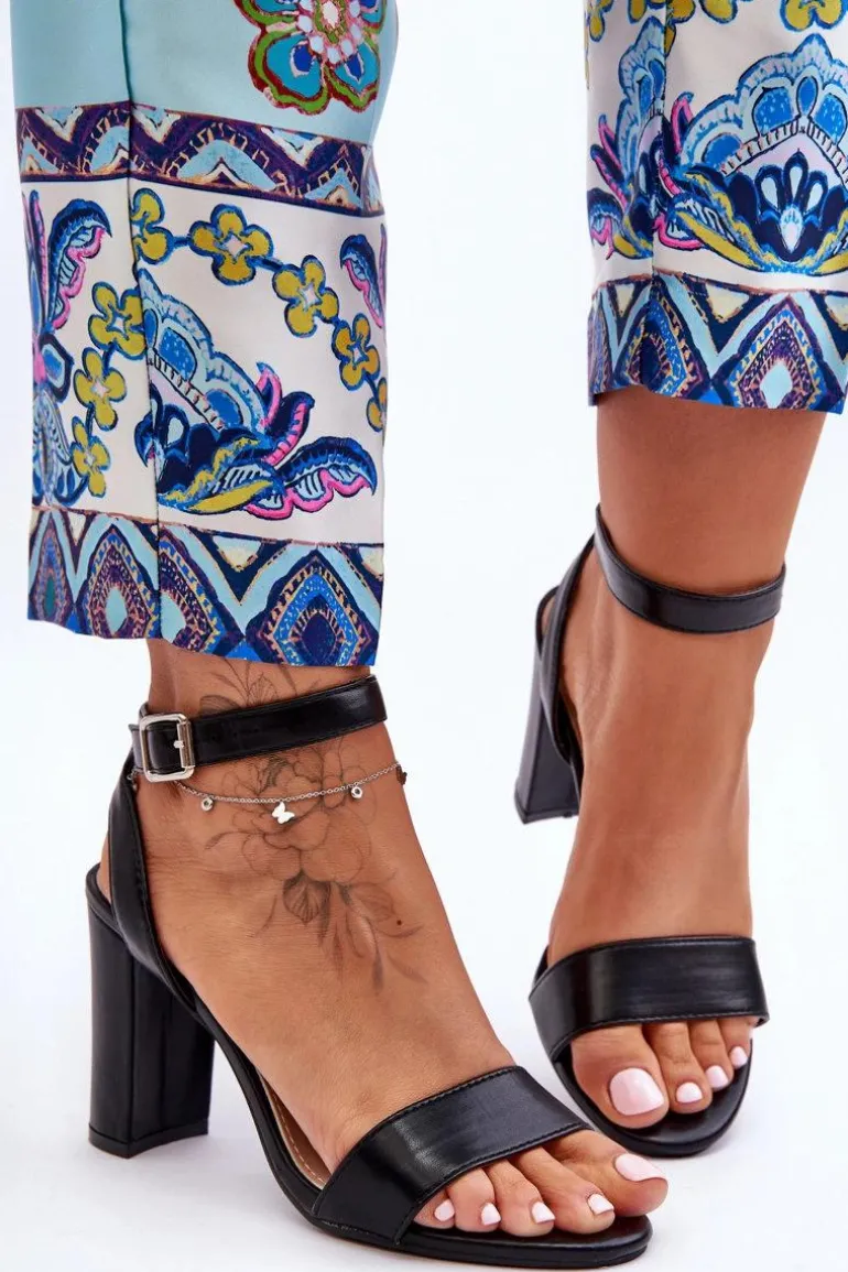 Damskie, klasyczne sandałki osadzono na obcasie w postaci stabilnego słupka. Model ten został wykonany z eko skóry. Buty te posiadają regulowany pasek zapinany na sprzączkę. Idealne na różnego rodzaju imprezy. Ten model powinien być Twój! Przy wyborze rozmiaru prosimy sugerować się tabelą rozmiarów.