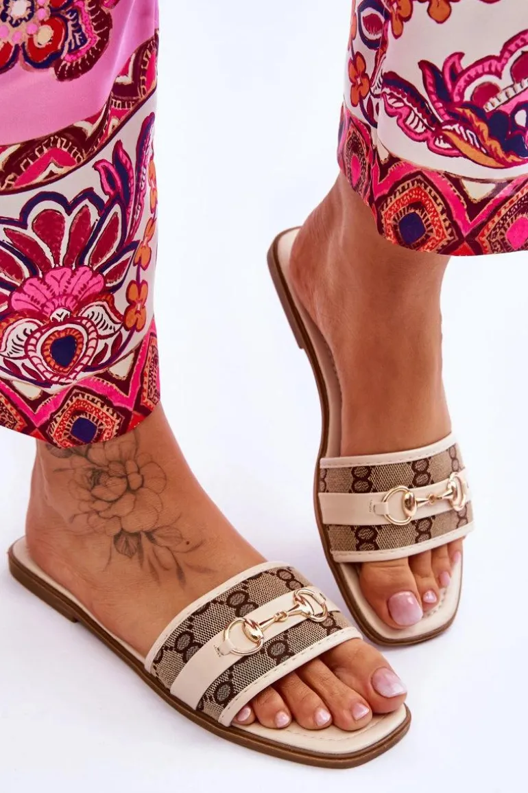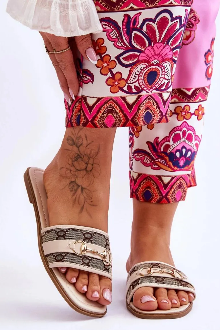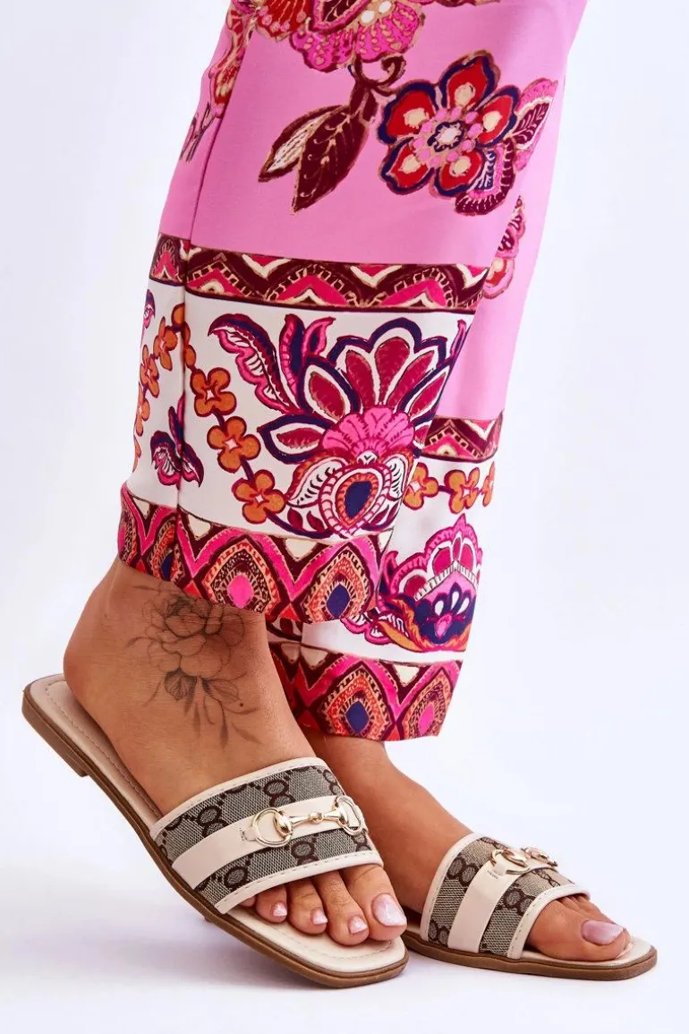 Klasyczne klapki zostały wykonane z połączenia eko skóry oraz tkaniny. Model ten jest klasycznie wsuwany z otwartym, kwadratowym noskiem. Osadzone na płaskim obcasie. Miękka wkładka została także wykonana z eko skóry. Ten model świetnie sprawdzi się na co dzień! Przy wyborze rozmiaru prosimy sugerować się tabelą rozmiarów.