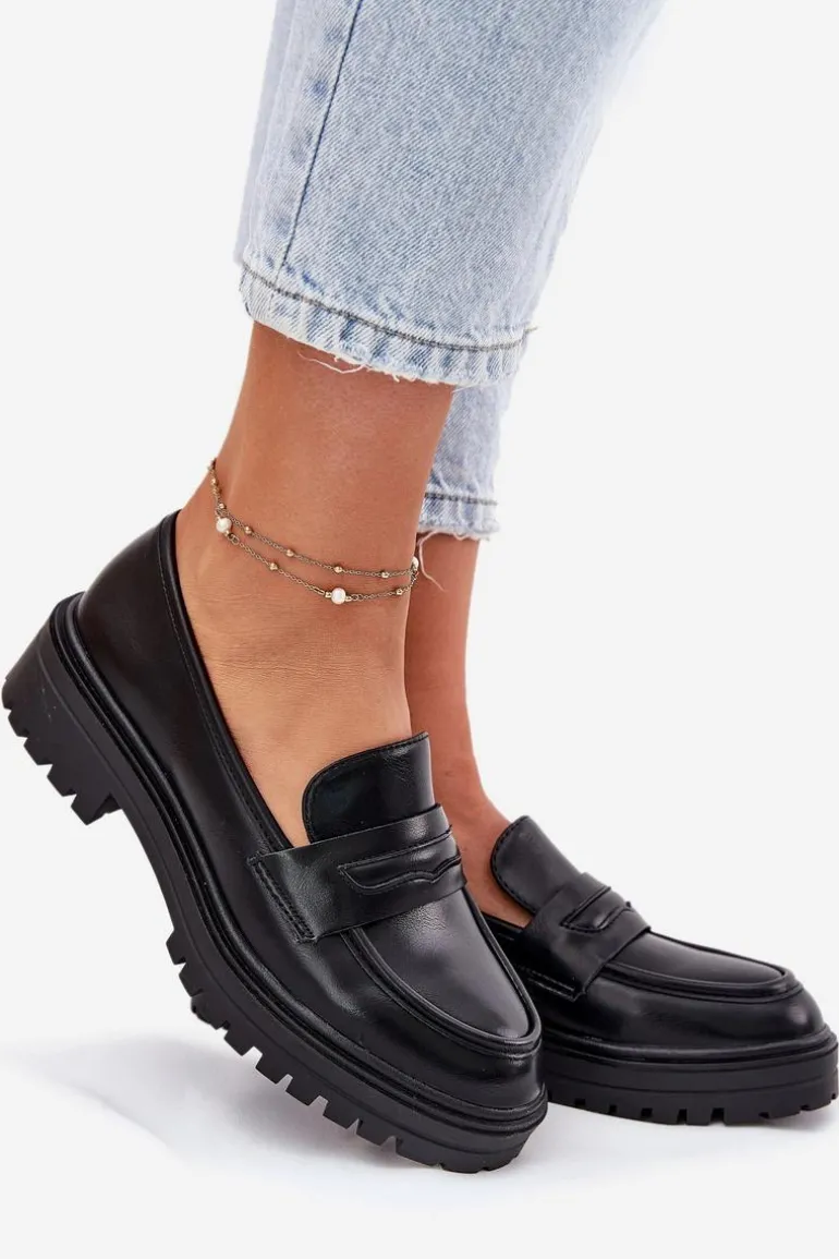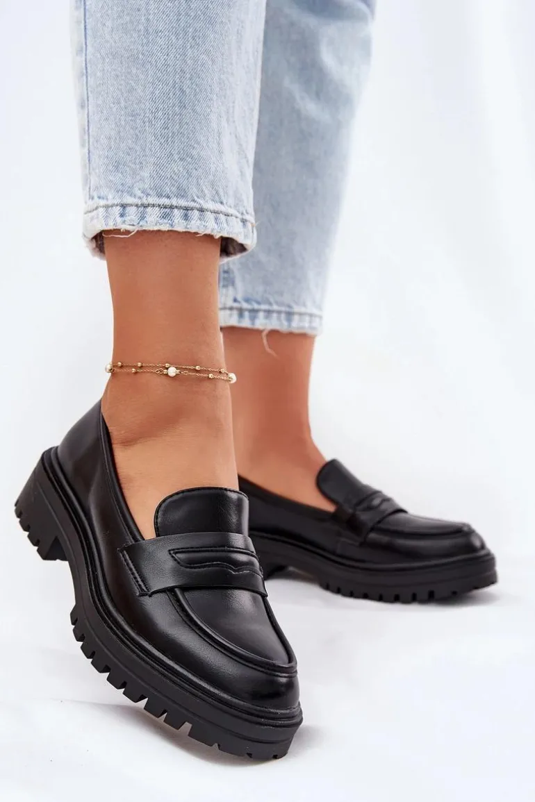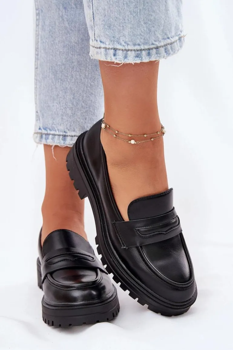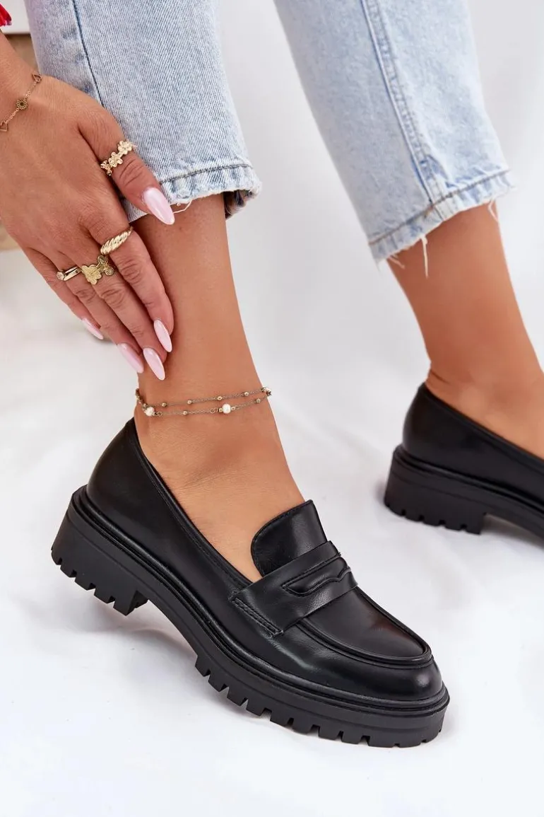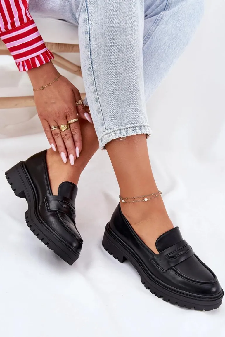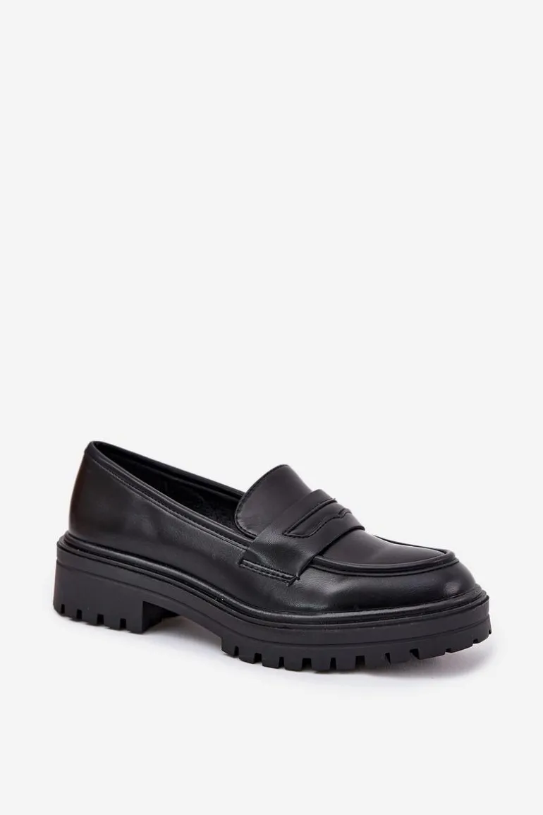 Klasyczne Mokasyny Damskie Z Eko Skóry Czarne Enticca