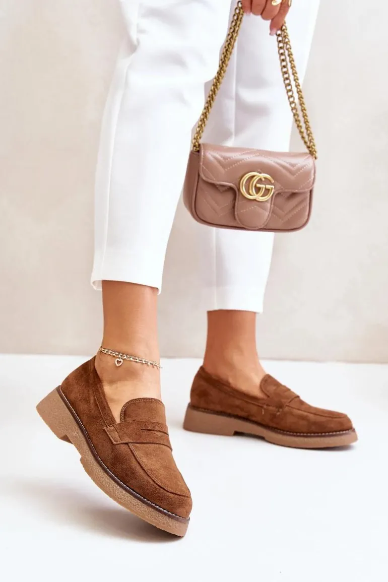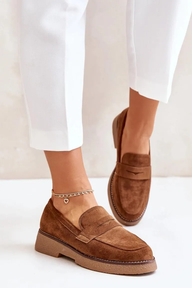 Klasyczne Mokasyny Damskie Z Eko Zamszu Brązowe Belania