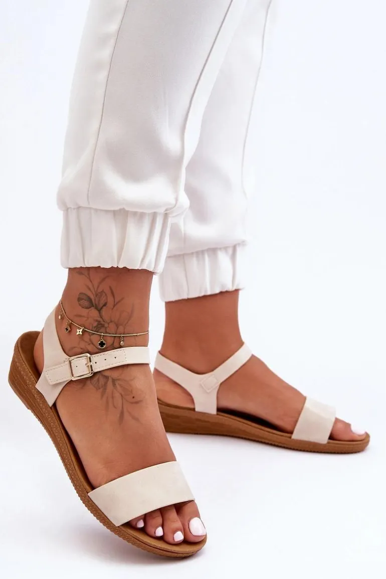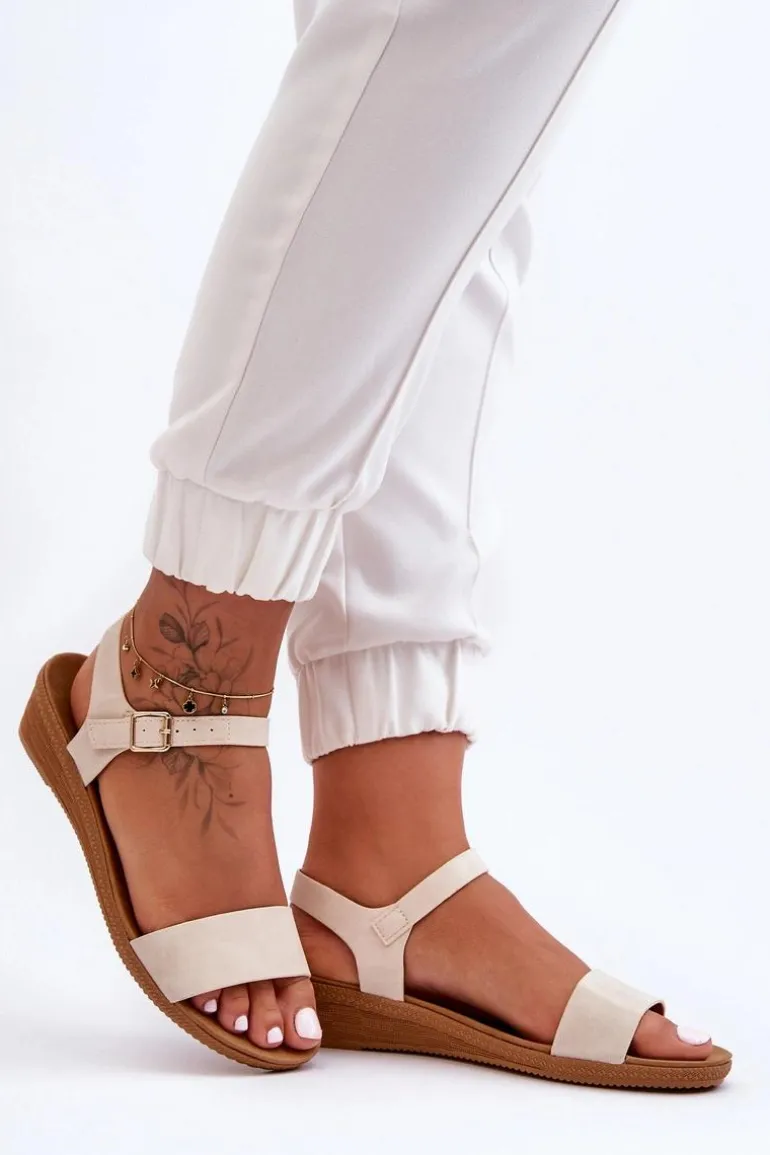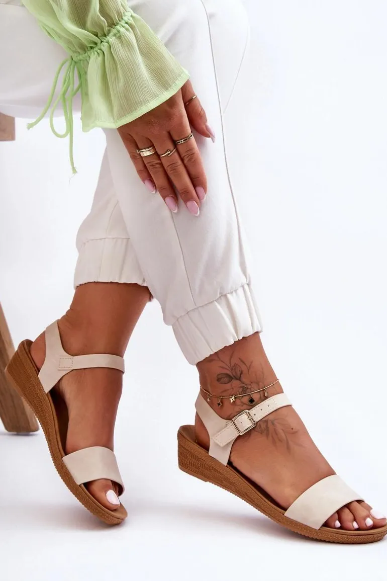 Klasyczne Sandały Na Niskim Koturnie Beżowe Arya