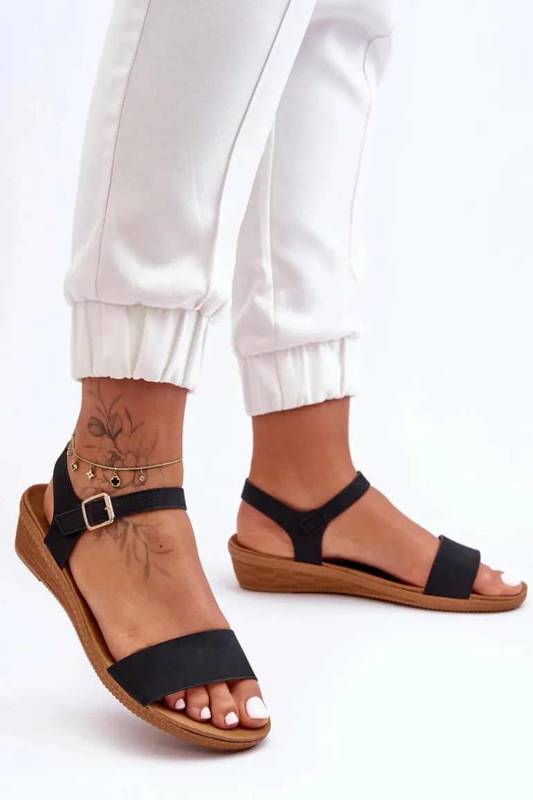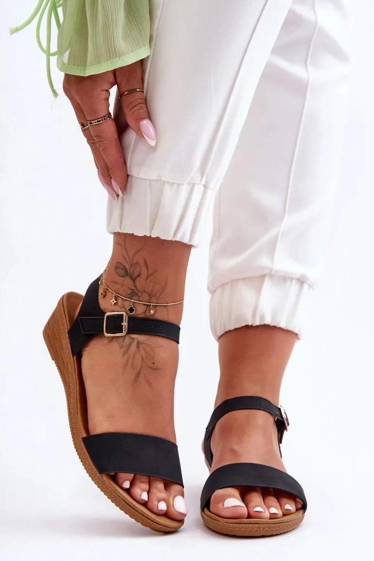Klasyczne Sandały Na Niskim Koturnie Czarne Arya