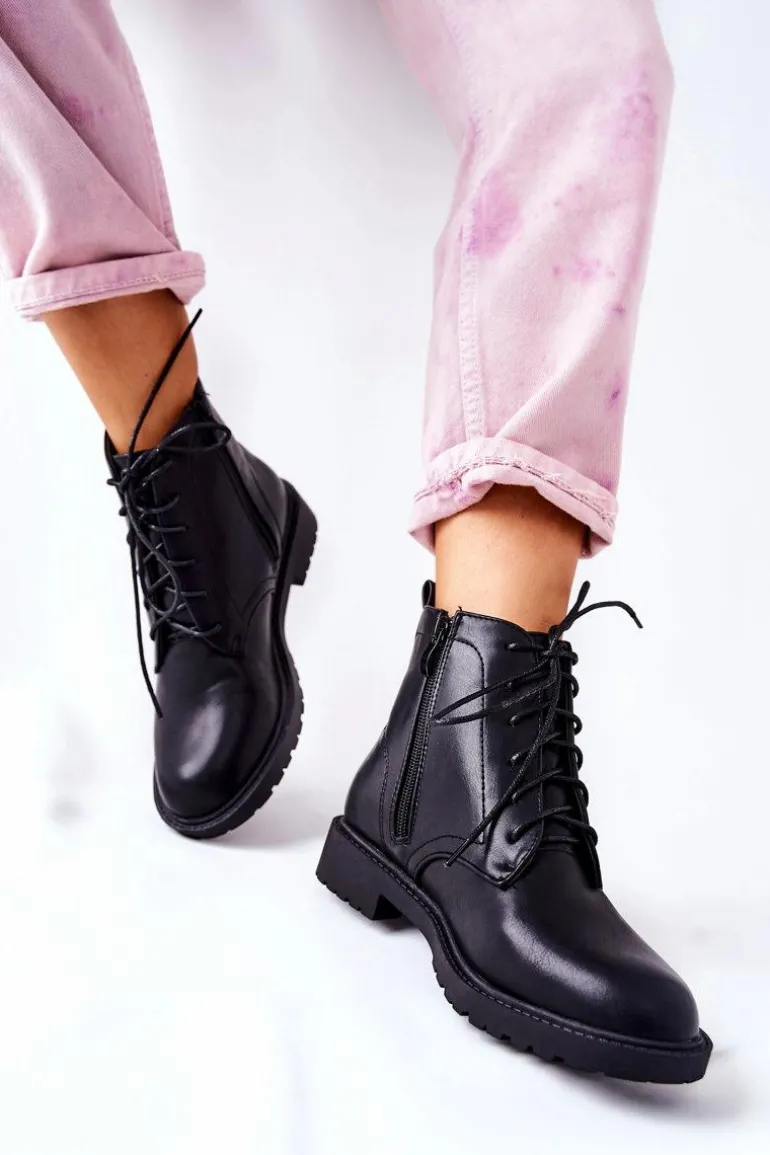 Klasyczne botki posiadają wiązanie oraz suwak ułatwiający zakładanie butów. Wykonane z eko skóry. Botki w środku posiadają na całości ocieplenie w postaci koca obuwniczego. Wiązanie w kolorze obuwia. Idealne na chłodne dni. Będą pasować do wielu stylizacji! Przy wyborze rozmiaru prosimy sugerować się tabelą rozmiarów.