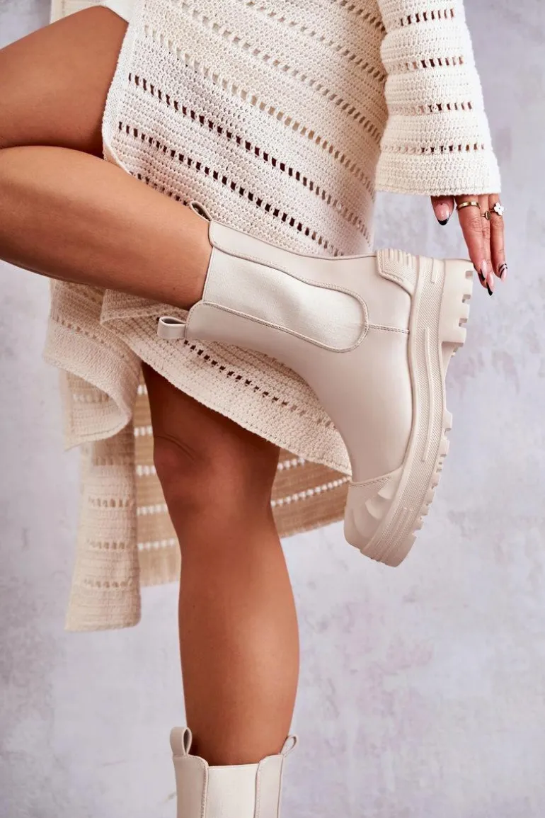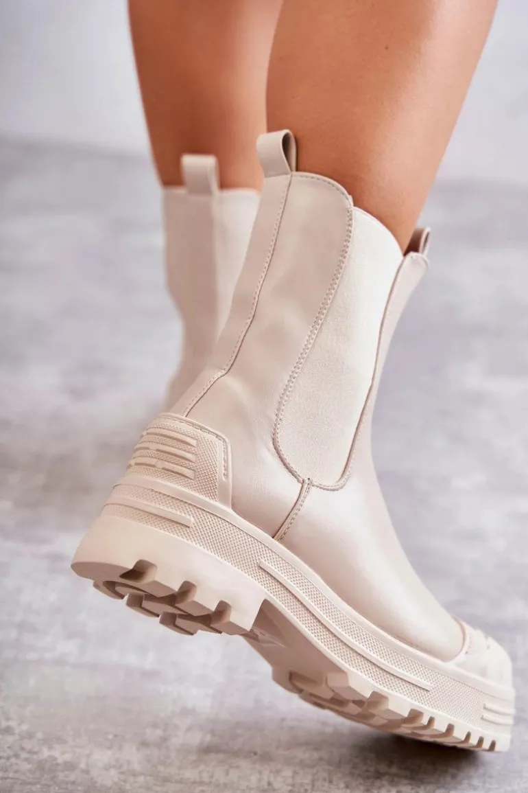 Klasyczne Wysokie Workery Botki Beżowe Bassti