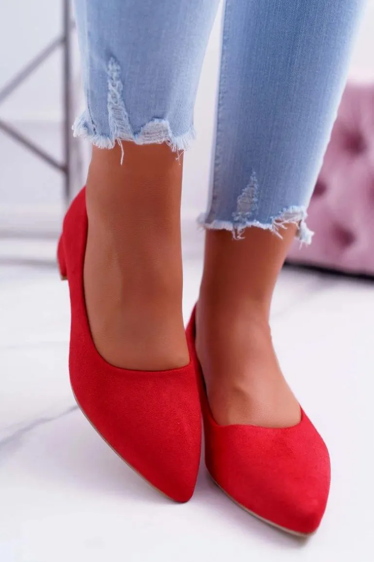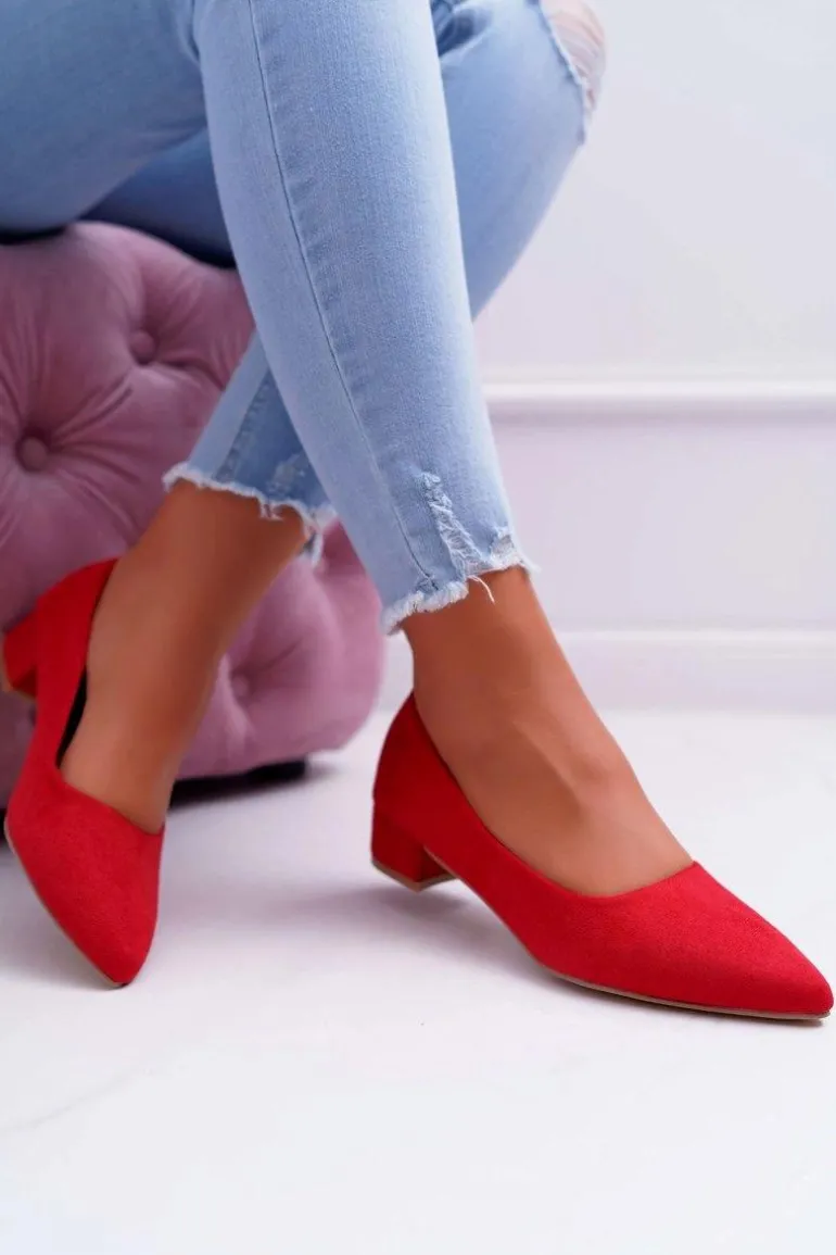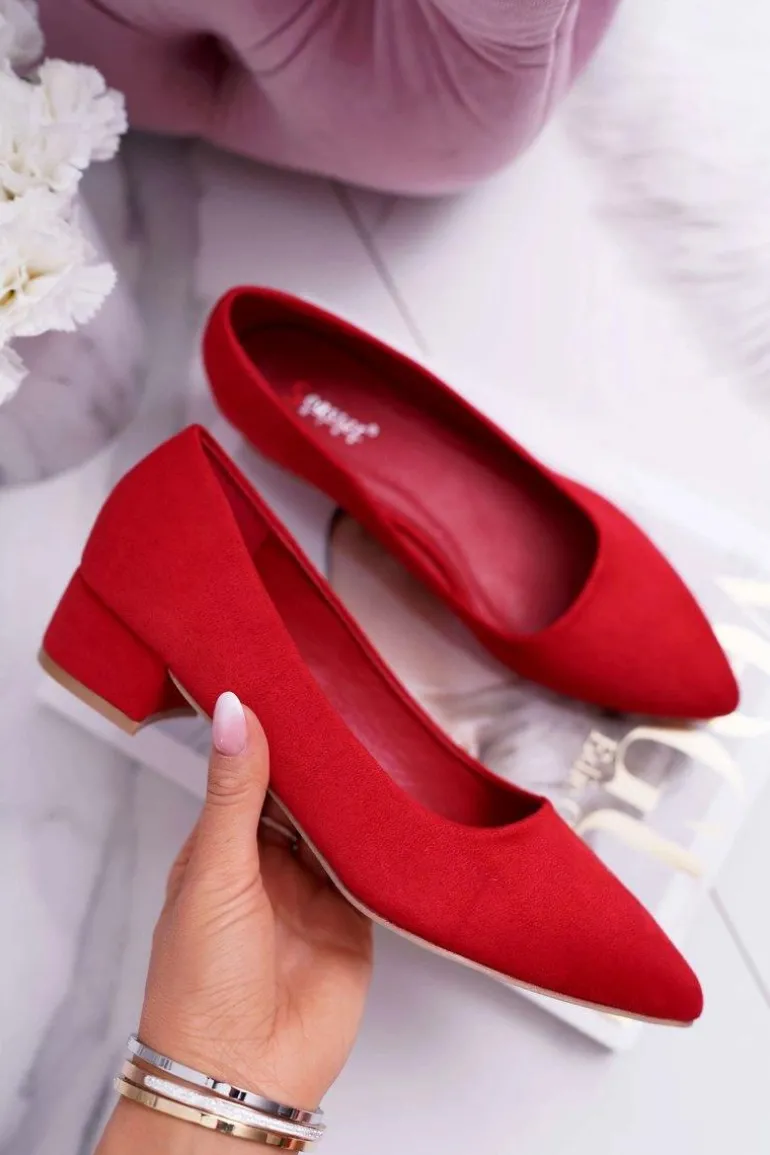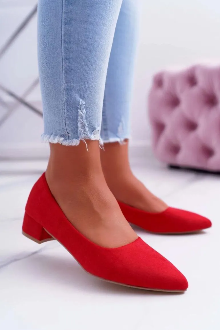 Czółenka na niskim obcasie wykonane z eko zamszu. Modny fason dostępny w wielu pięknych kolorach! Przy wyborze rozmiaru prosimy kierować się tabelą rozmiarów