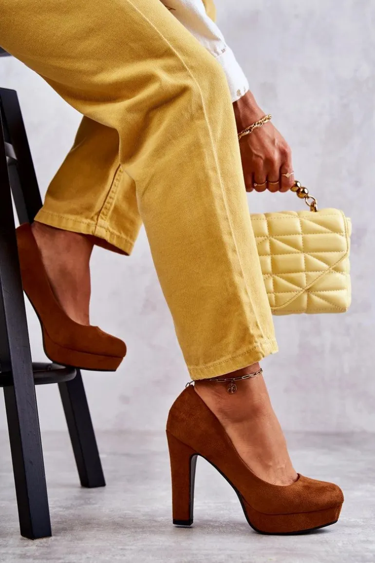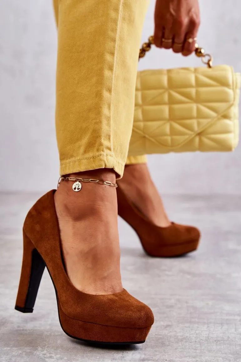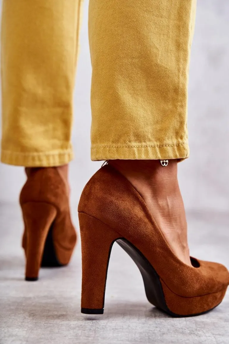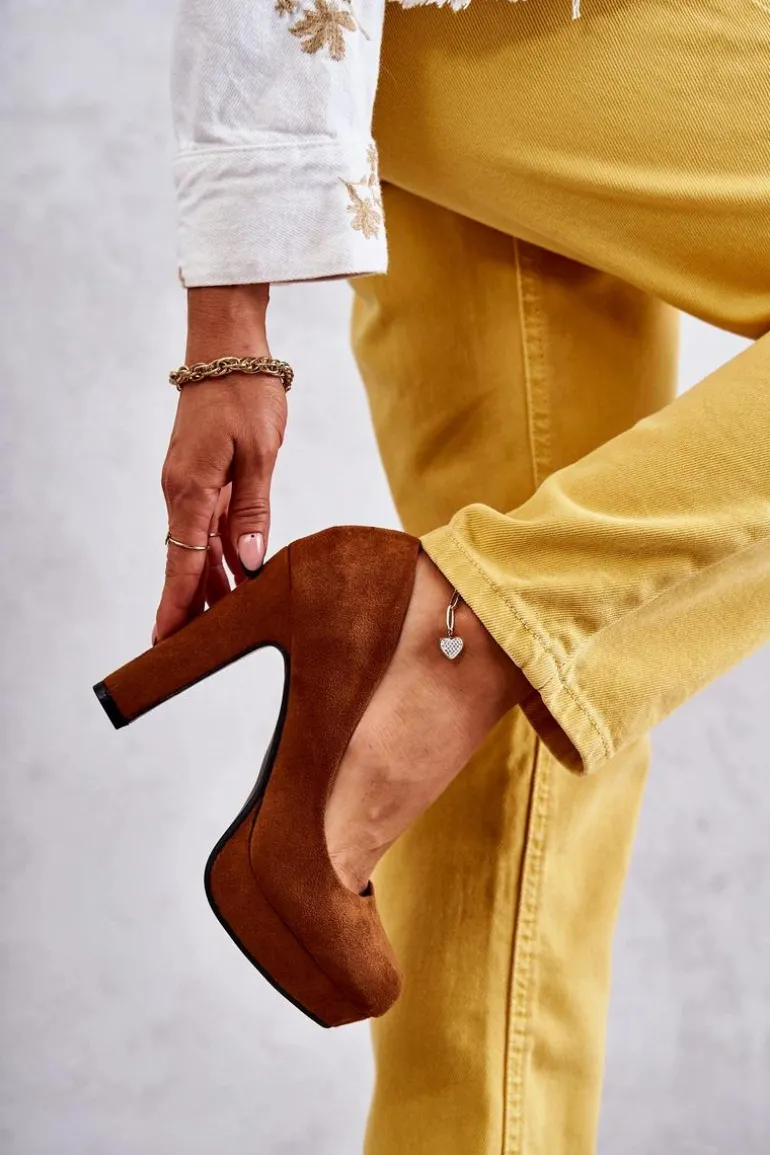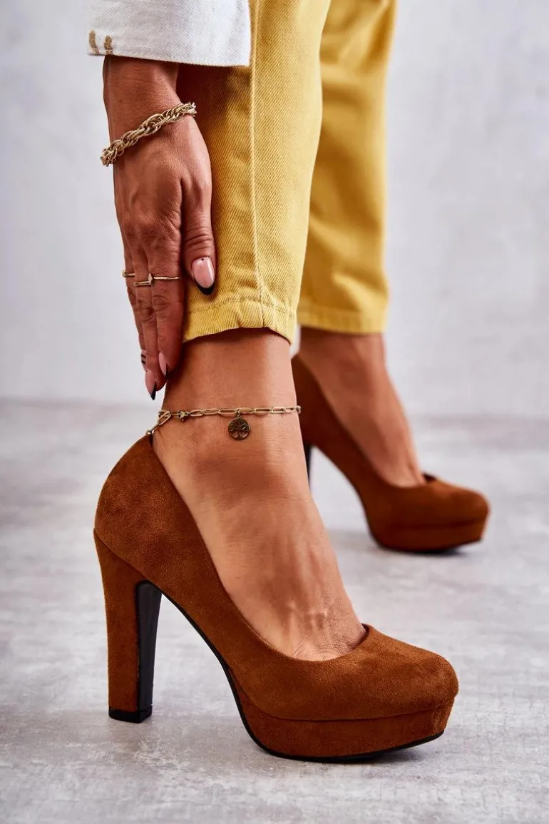 Klasyczne Zamszowe Czółenka Na Obcasie Camel Soro