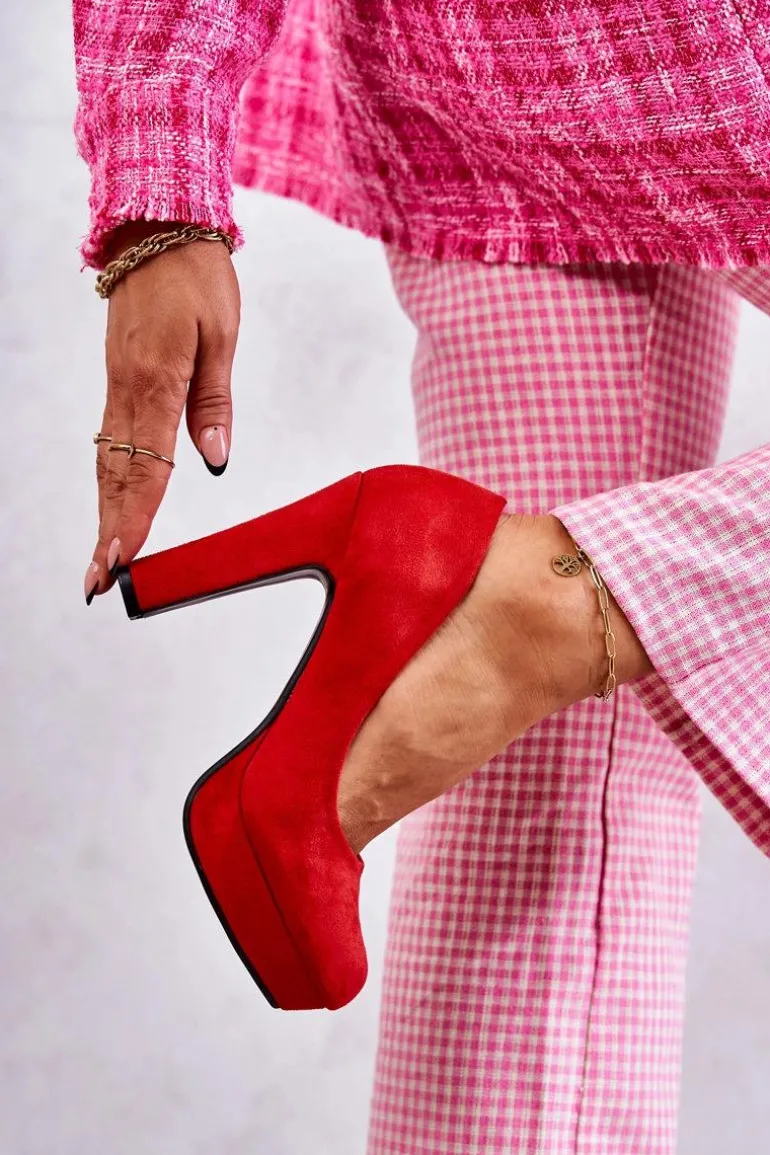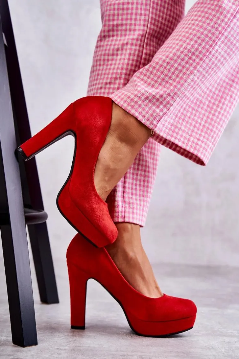 Klasyczne czółenka zostały wykonane z przyjemnego w dotyku eko zamszu. Model osadzony na średniej wysokości słupku oraz platformie, który optycznie wydłuży i wysmukli nogi. Wkładka wykonana z eko skóry. Nosek delikatnie zaokrąglony. Dodatkowo zapiętek jest usztywniany. Model klasyczny, który będzie pasować do wielu stylizacji! Przy wyborze rozmiaru prosimy kierować się tabelą rozmiarów.