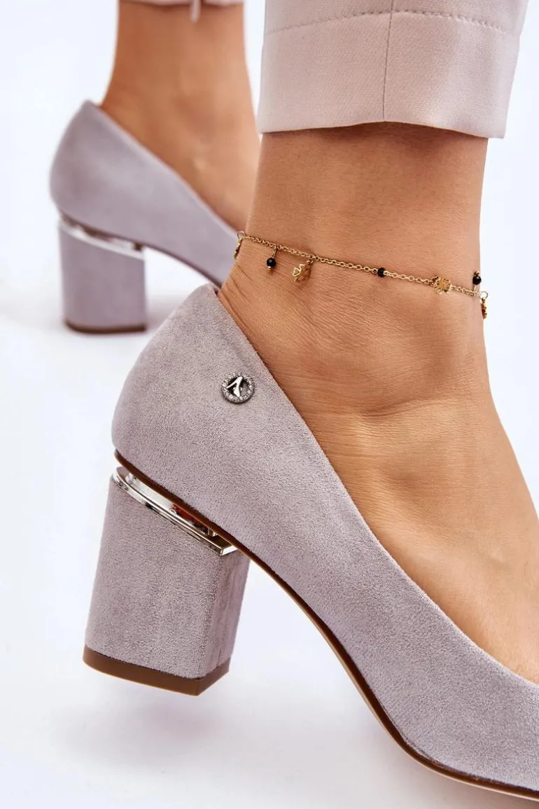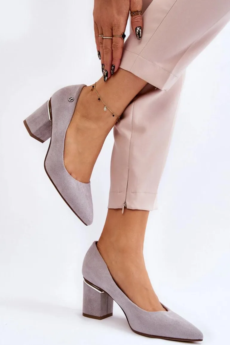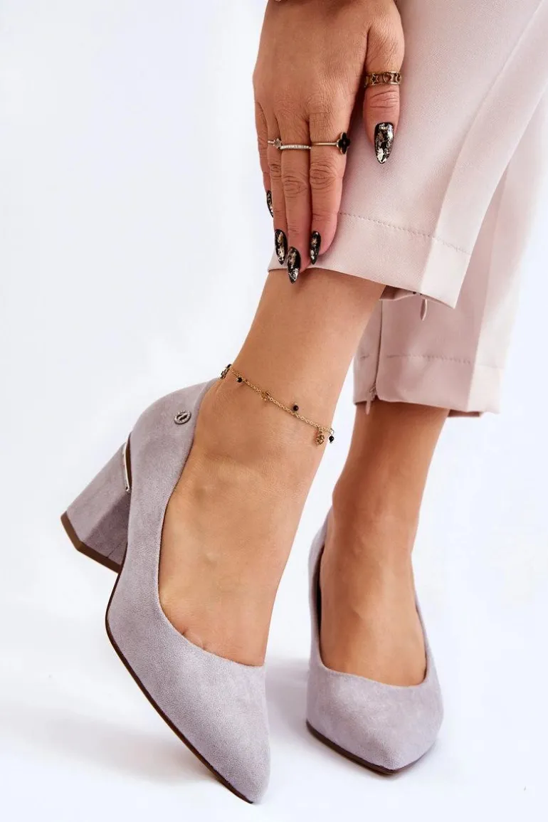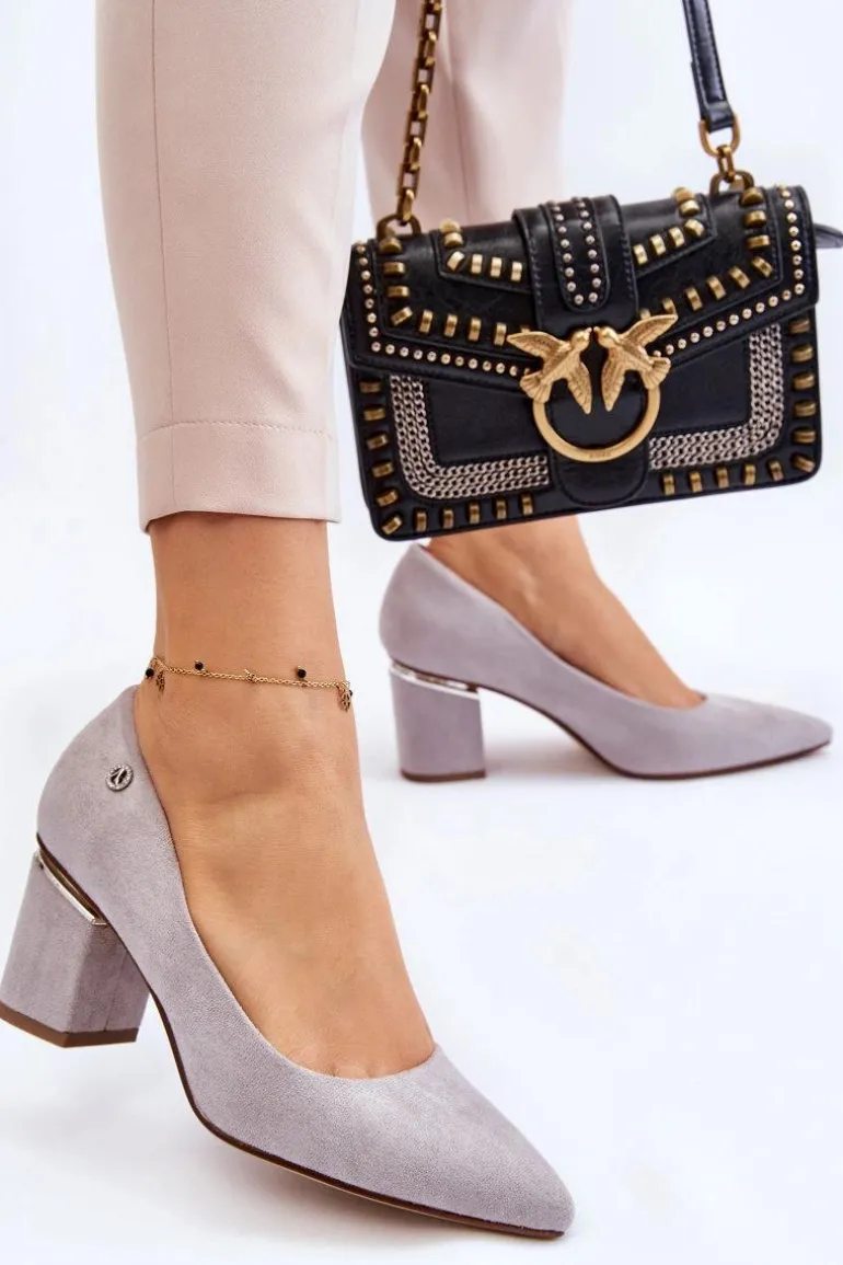 Klasyczne Zamszowe Czółenka Na Obcasie Z Ozdobą Szare Derren