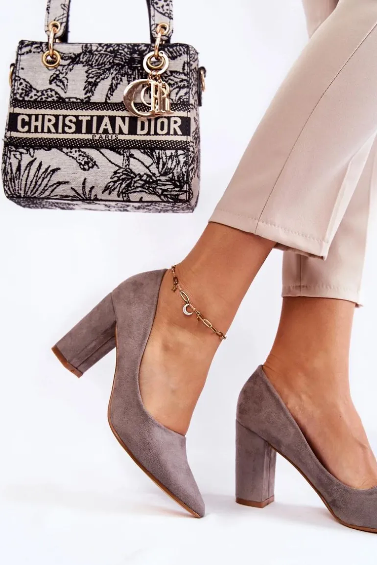 Klasyczne Zamszowe Czółenka Na Słupku Szare Kendra