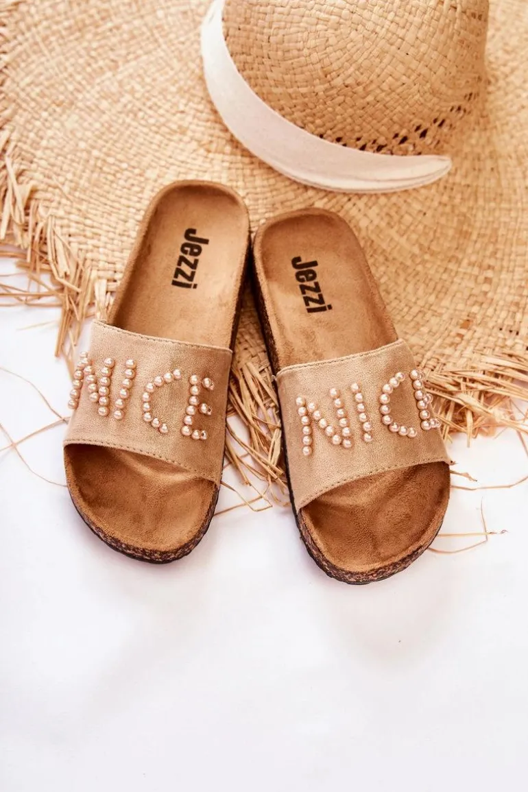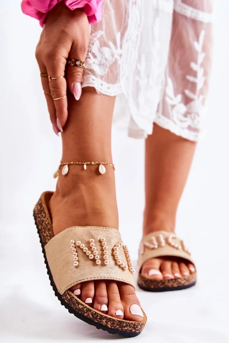 Damskie klapki w nowoczesnej odsłonie! Wykonane z miłego w dotyku eko zamszu. Klapki posiadają na przodzie napis wykonany z koralików. Wkładka jest profilowana i wykonana z eko zamszu. Klapki osadzone na korkowej platformie. Nosek odkryty, zaokrąglony. Klapki te świetnie dopasowują się do stopy. Buty te są naprawdę komfortowe i wygodne w użytkowaniu nawet podczas użytkowania przez cały dzień! Przy wyborze rozmiaru prosimy sugerować się tabelą rozmiarów.