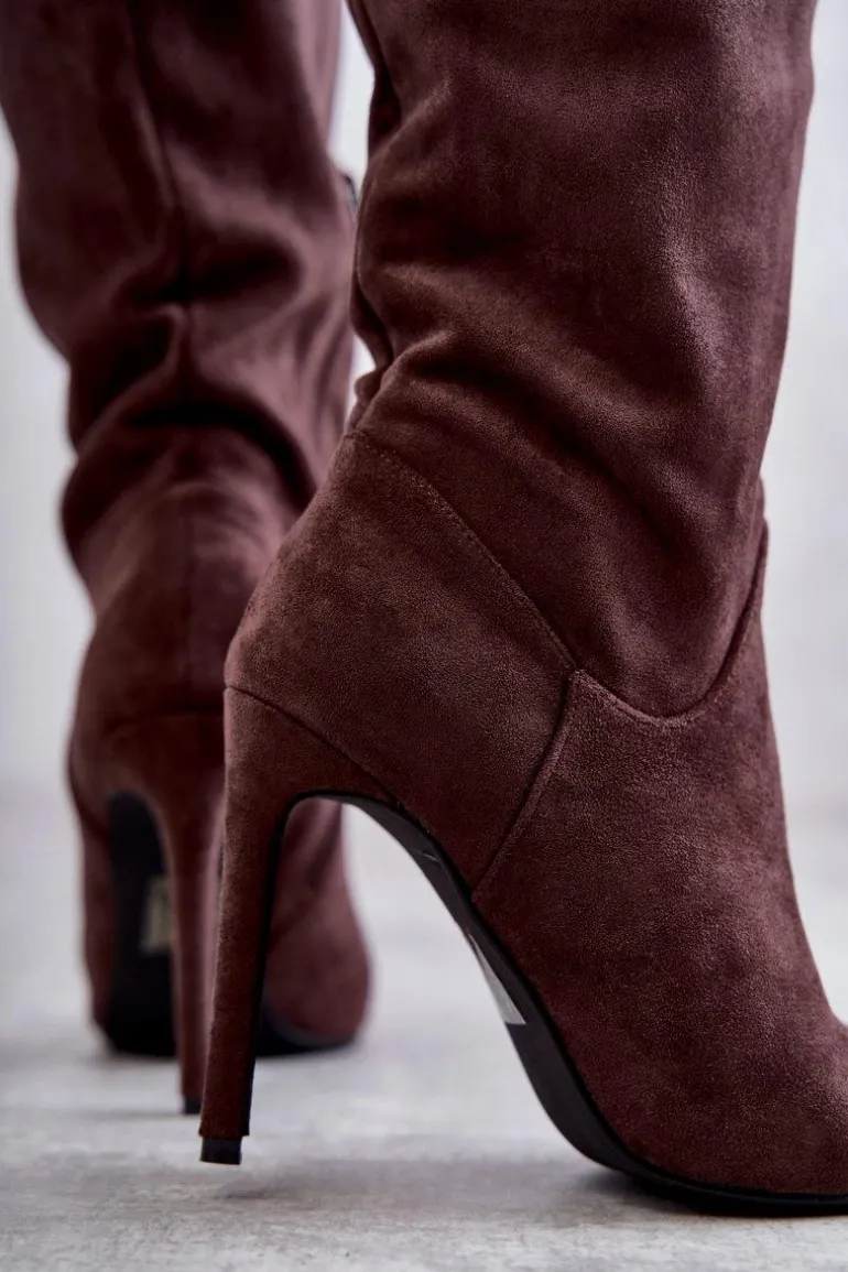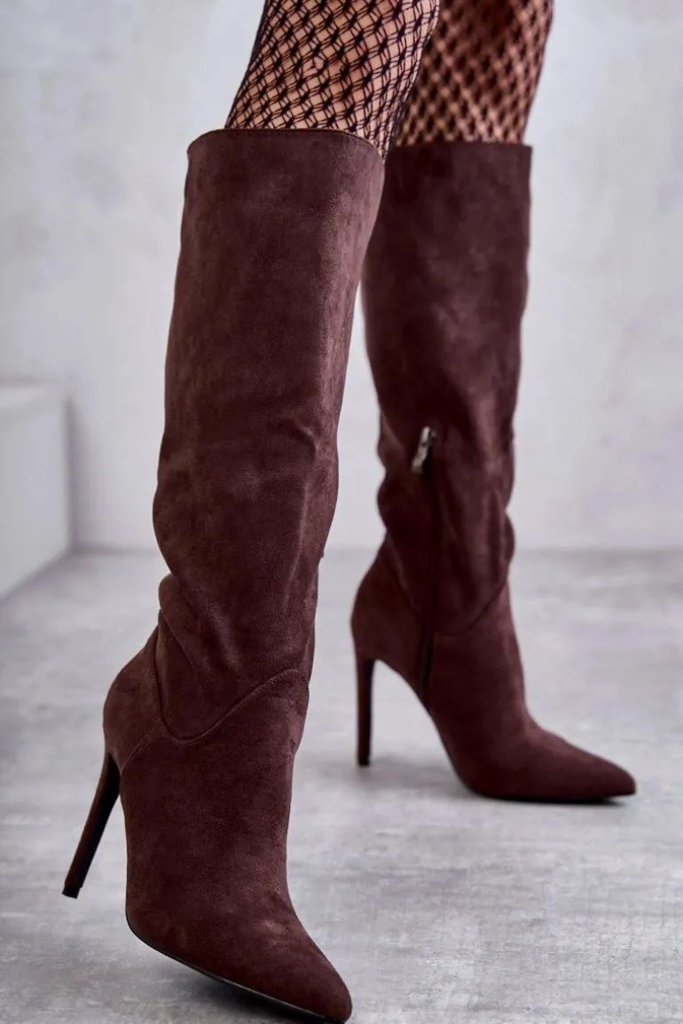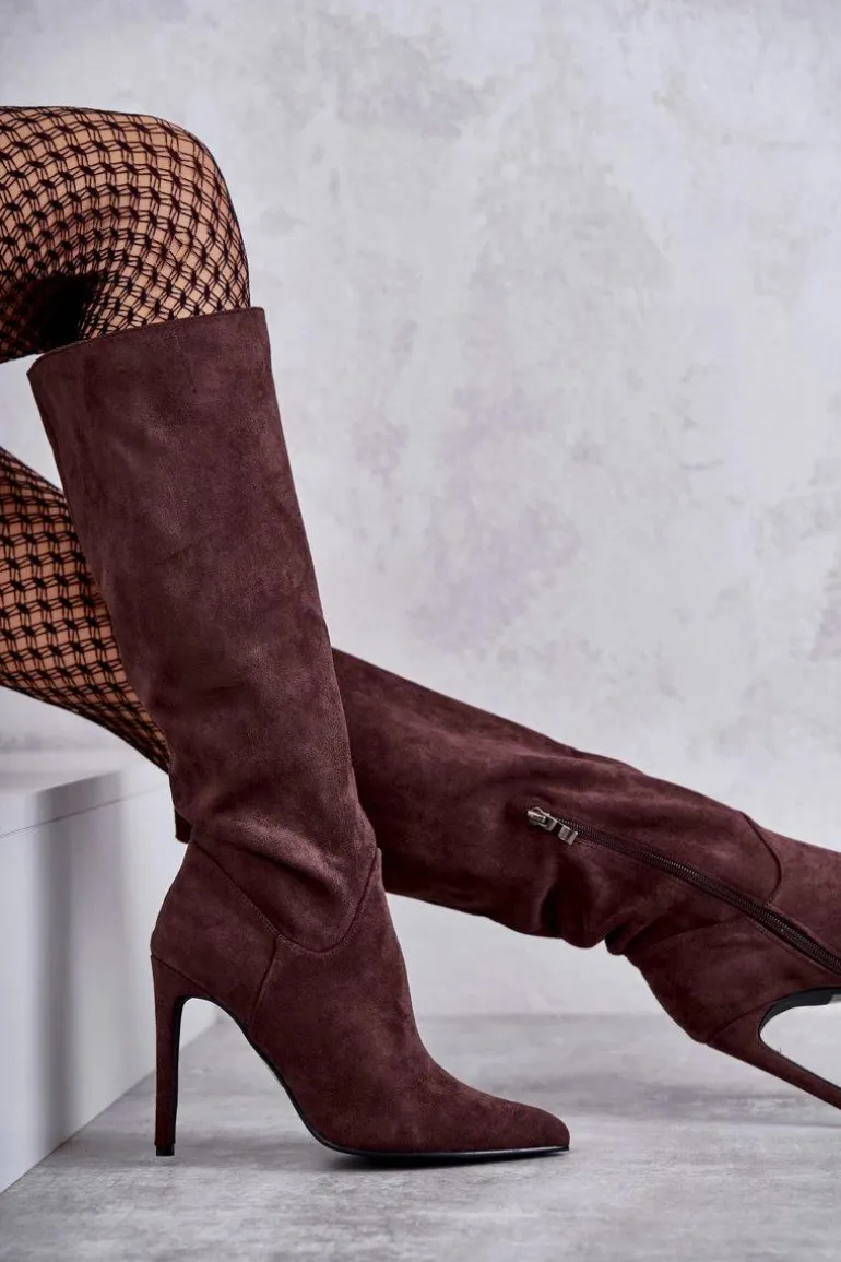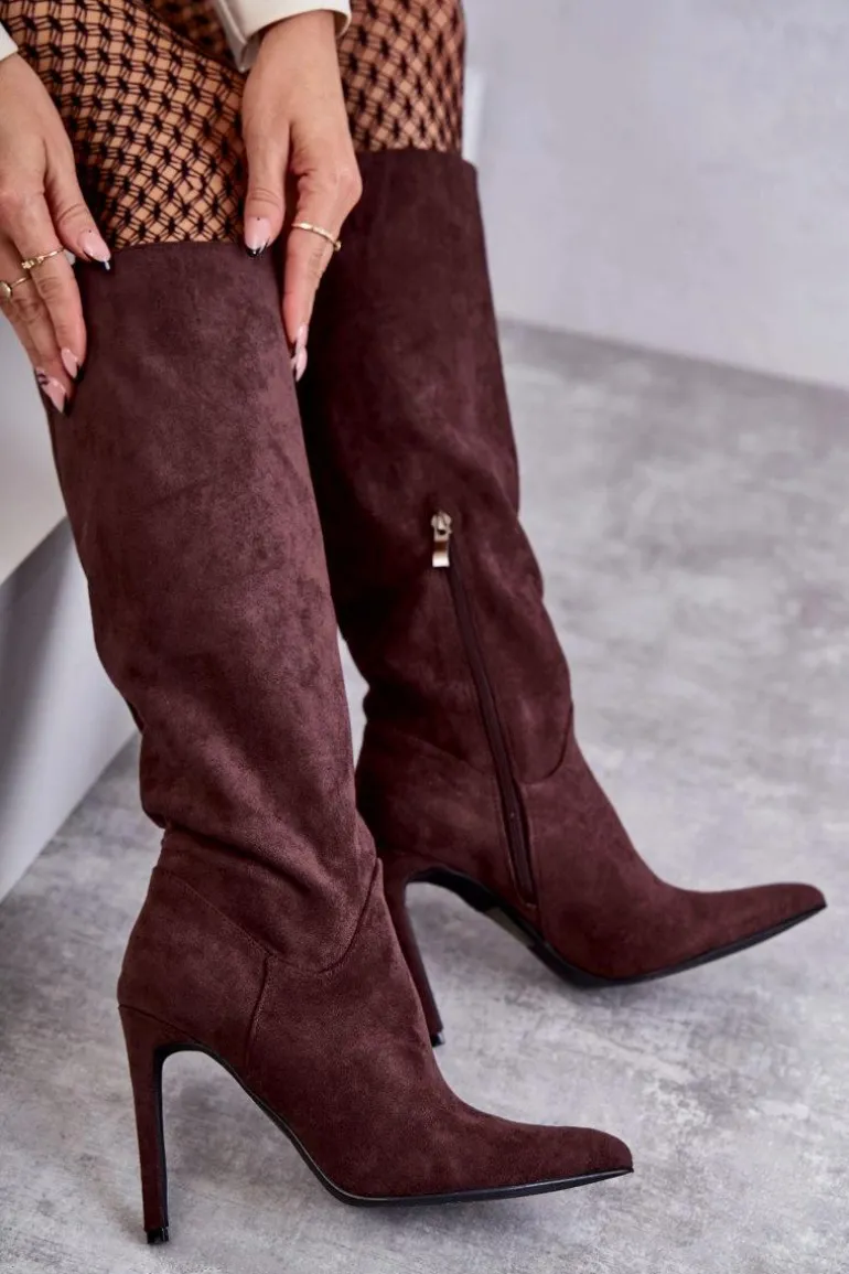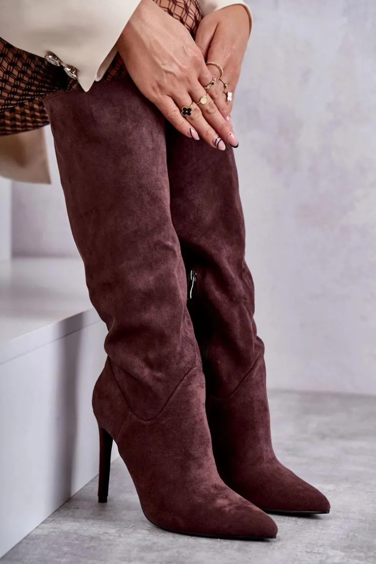Klasyczne kozaki damskie z cholewką przed kolano. Posiadają delikatne przeszycia. Wykonane z miłego w dotyku eko zamszu. Model został osadzony na obcasie w postaci szpilki. Zapiętek usztywniany. Z boku zapinane na suwak. Wygodny model, który powinien znaleźć się w Twojej szafie! Wykorzystasz je w wielu stylizacjach! Muszą być Twoje! Przy wyborze rozmiaru prosimy sugerować się tabelą rozmiarów.