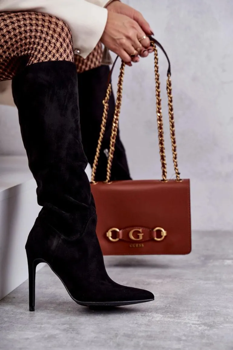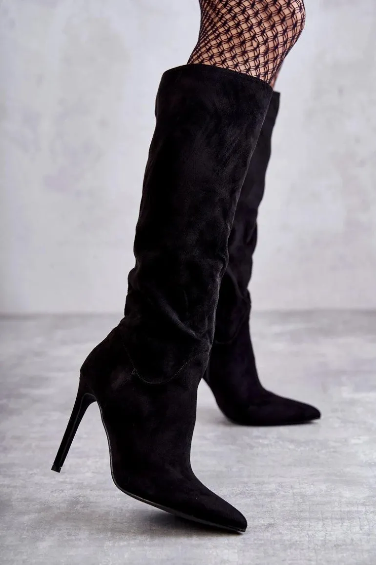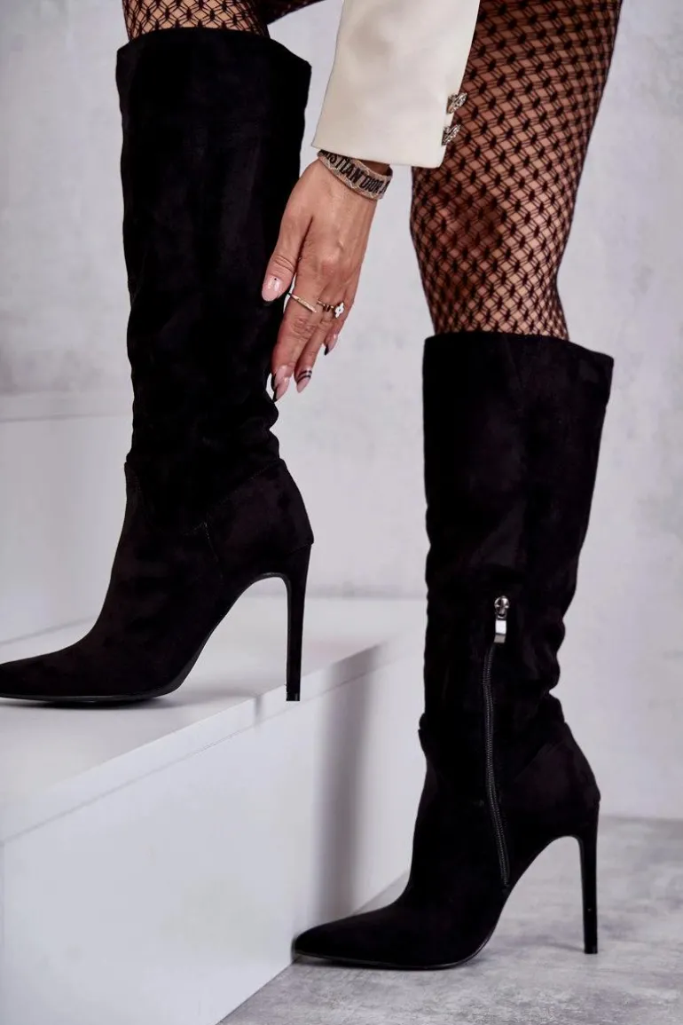 Klasyczne kozaki damskie z cholewką przed kolano. Posiadają delikatne przeszycia. Wykonane z miłego w dotyku eko zamszu. Model został osadzony na obcasie w postaci szpilki. Zapiętek usztywniany. Z boku zapinane na suwak. Wygodny model, który powinien znaleźć się w Twojej szafie! Wykorzystasz je w wielu stylizacjach! Muszą być Twoje! Przy wyborze rozmiaru prosimy sugerować się tabelą rozmiarów.