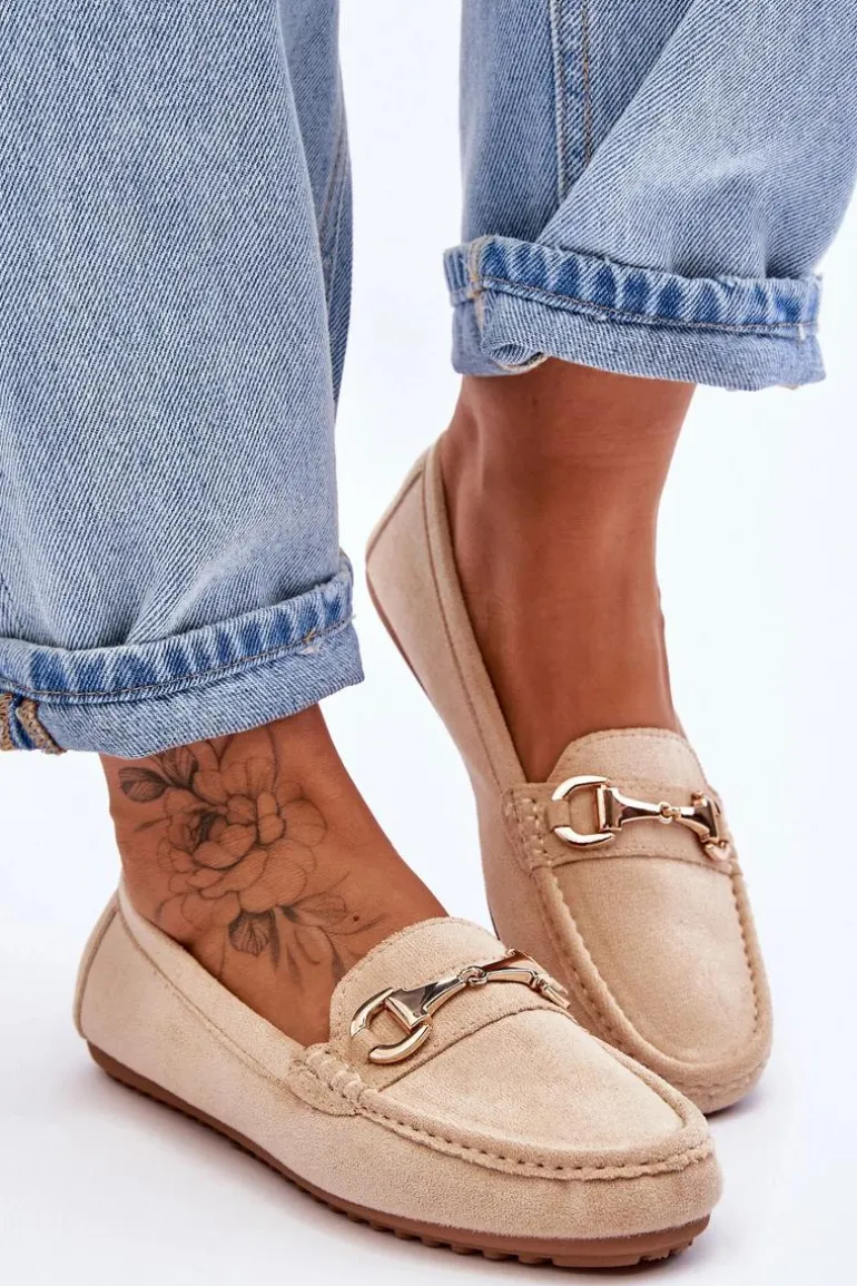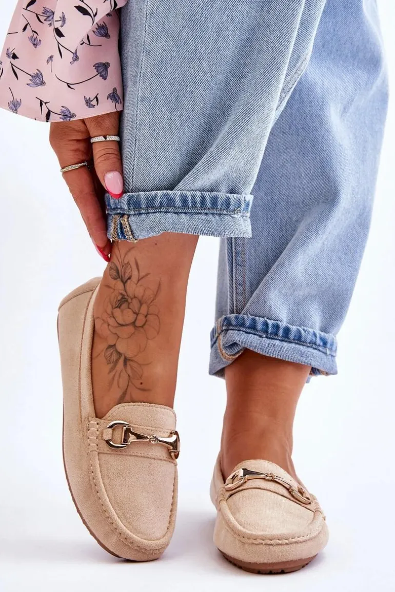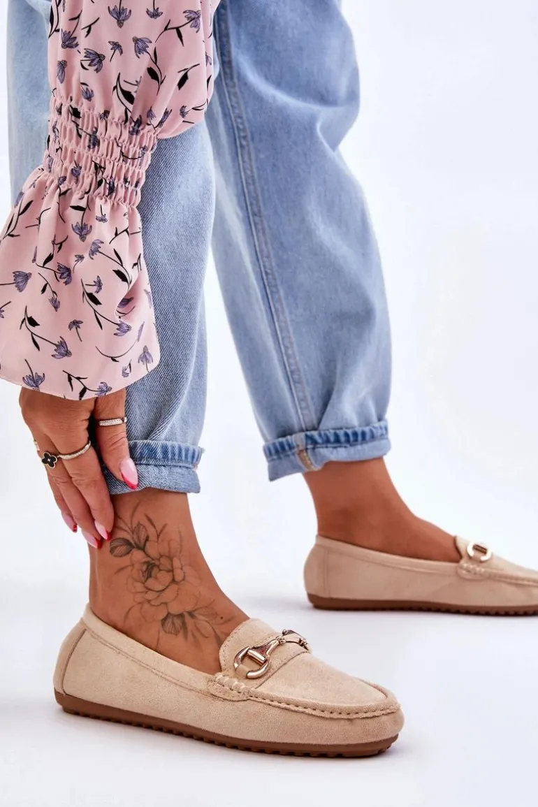 Klasyczne Zamszowe Mokasyny Z Ozdobą Beżowe Arla
