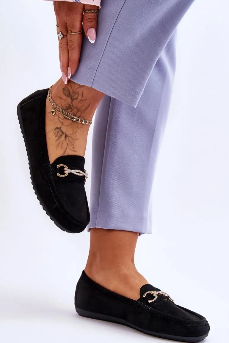 Damskie mokasyny są odpowiednim obuwiem do wielu stylizacji! Z pewnością wykorzystasz je w sezonie wiosenno-jesiennym. Zostały wykonane z miłego w dotyku eko zamszu z wkładką z eko skóry. Osadzone na delikatnej platformie. Udekorowane z przodu ozdobnym elementem z dżetami. Klasyczny model mokasyn powinien znaleźć się w szafie każdej kobiety! Przy wyborze rozmiaru prosimy sugerować się tabelą rozmiarów.