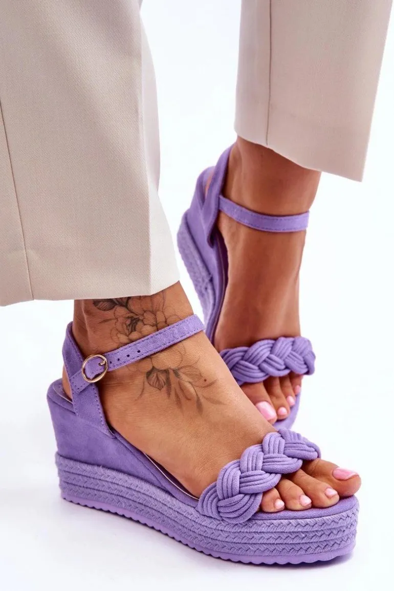 Klasyczne Zamszowe Sandały Na Koturnie Fioletowe Denisse