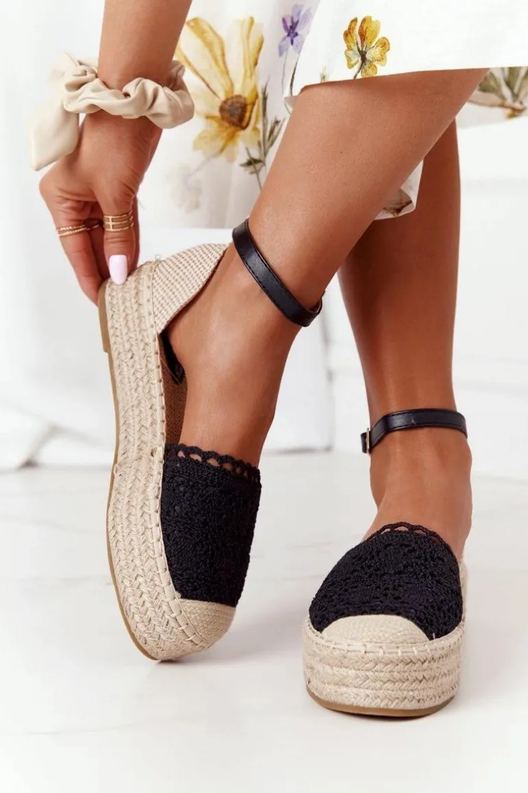 Piękne espadryle na plecionej platformie, z którymi stworzysz niebanalne stylizacje. Buty są lekkie i wygodne, posiadają miękką materiałową wkładkę oraz antypoślizgową podeszwę. Koniecznie sprawdź całą naszą kolekcję espadryli! Przy wyborze rozmiaru prosimy sugerować się tabelą rozmiarów.