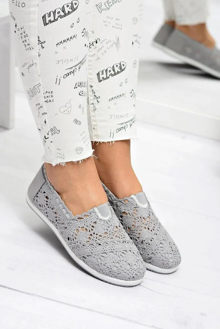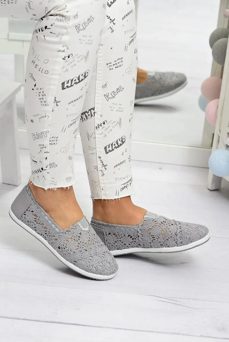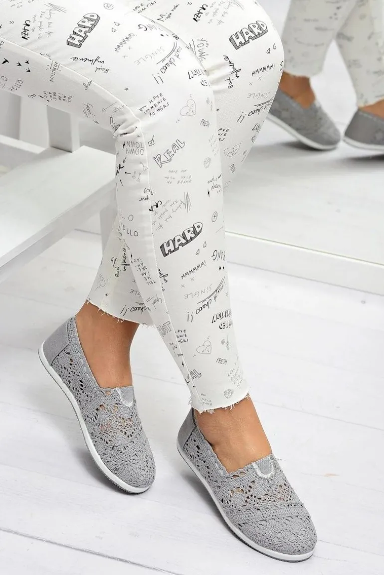 Koronkowe Szare Damskie Baleriny Little Sugar