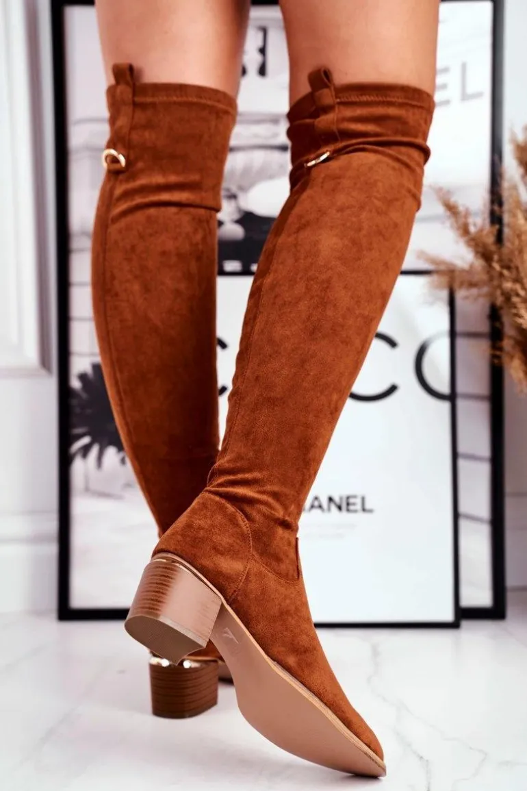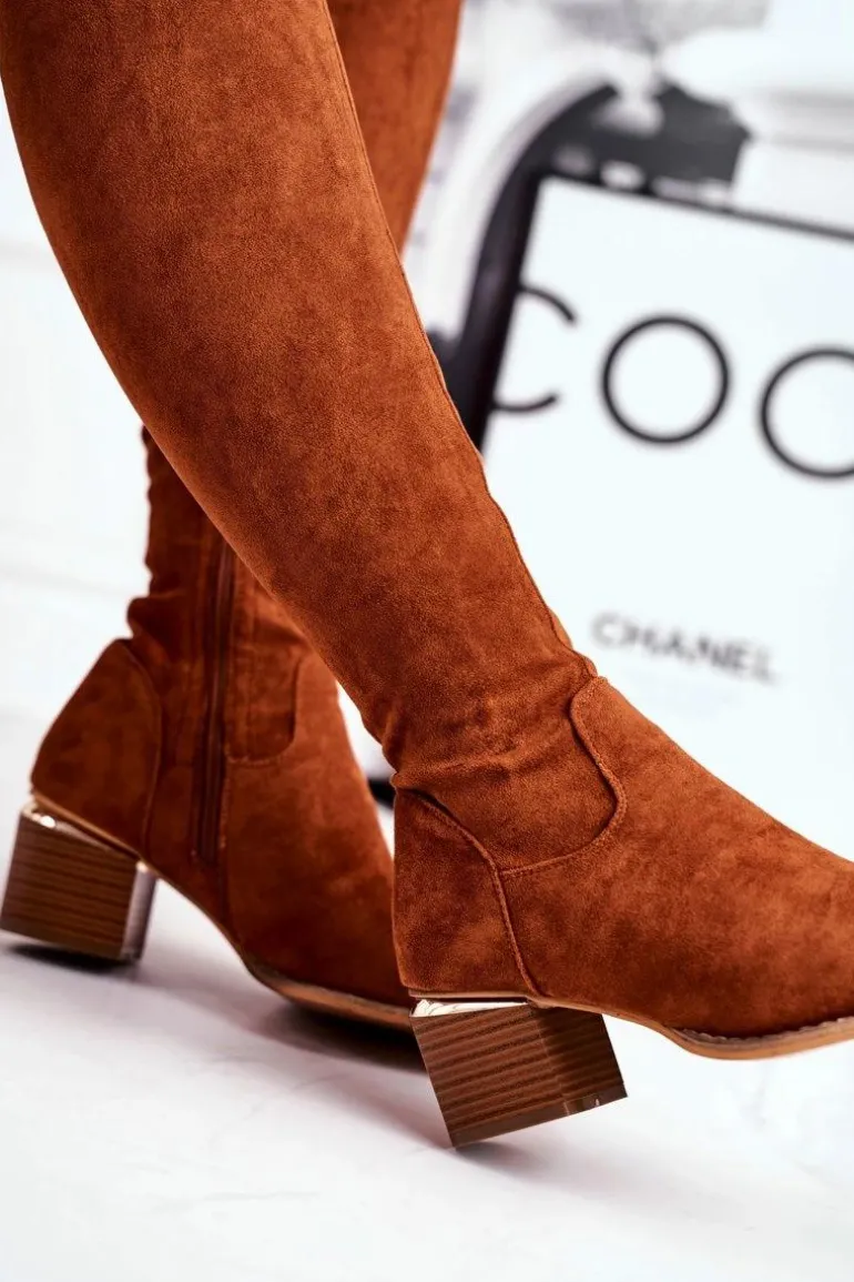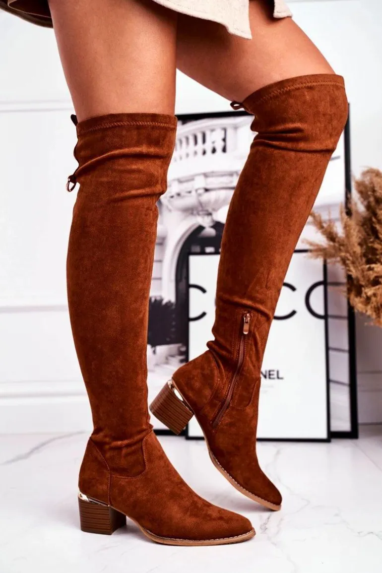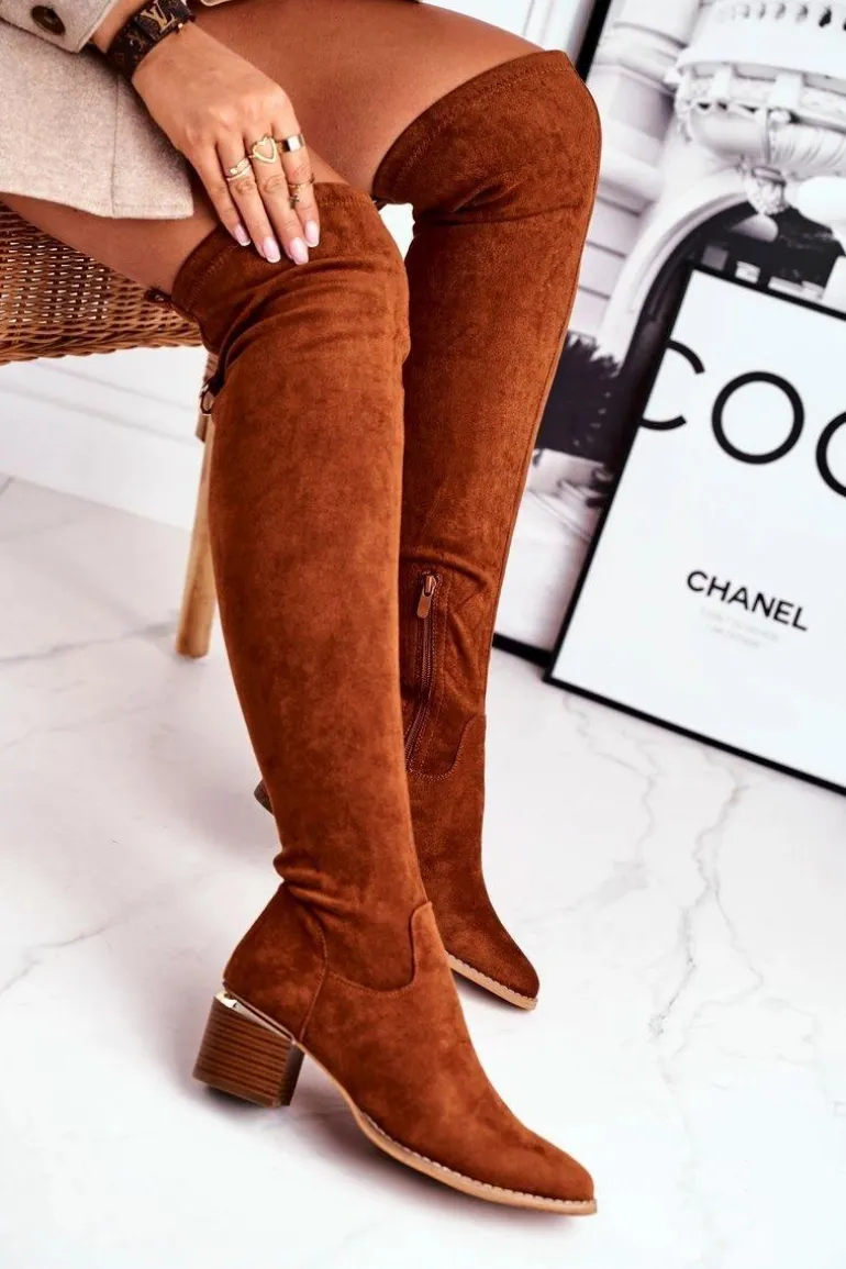 Kozaki damskie do kolana eko-zamsz camel Can’t Stop
