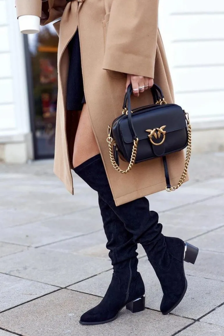 Kozaki damskie do kolana eko-zamsz czarne Can’t Stop