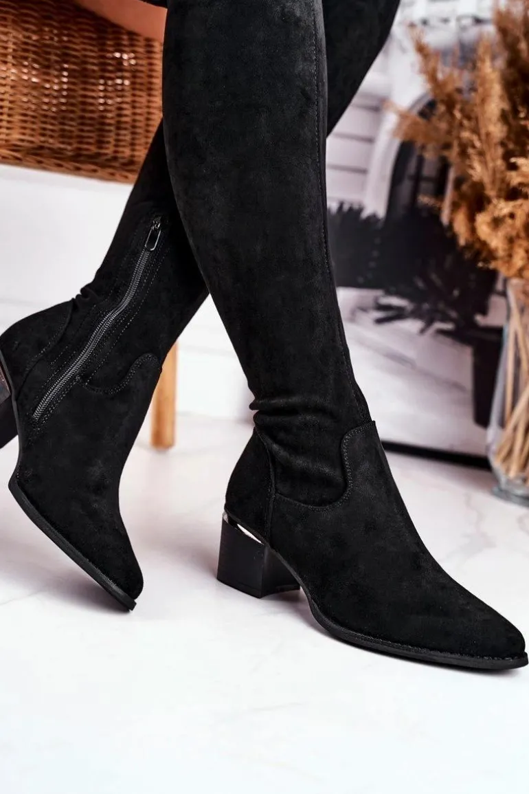 Kozaki Damskie Do Kolana Eko-Zamsz Czarne Indigo