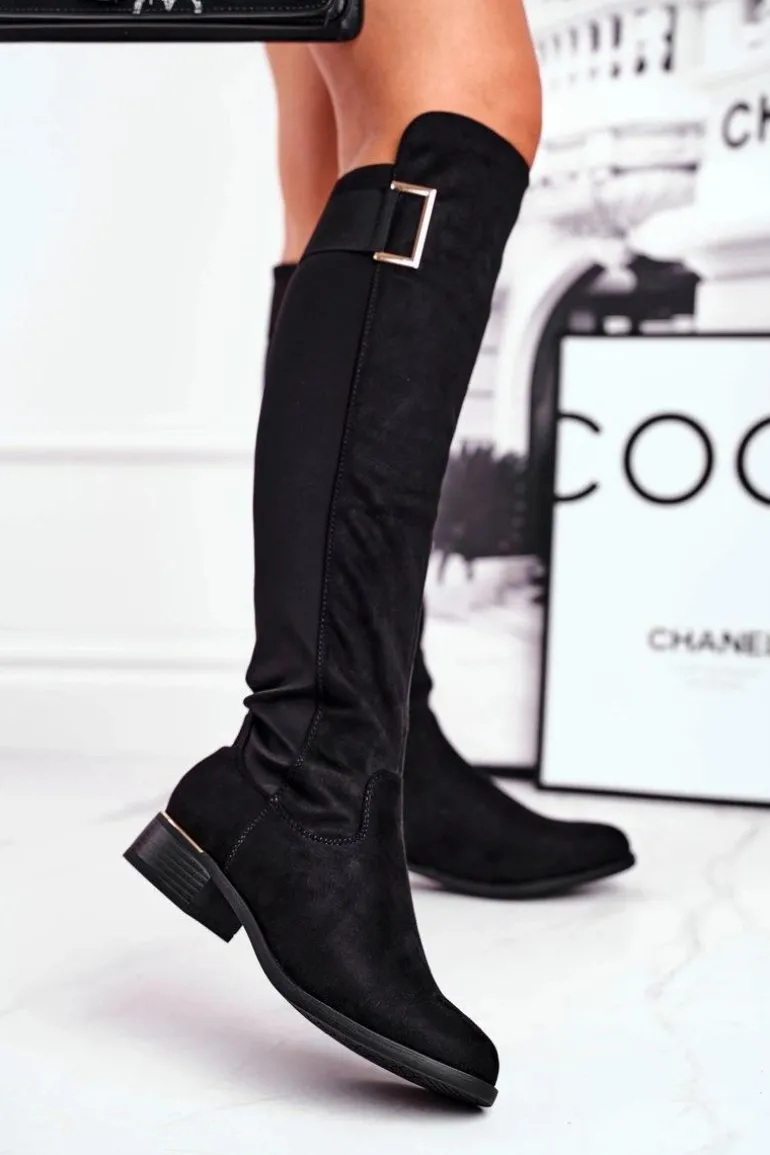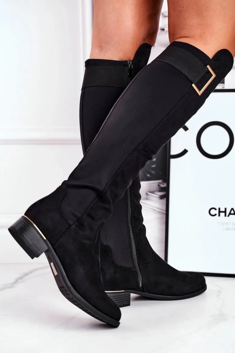 Kozaki Damskie Do Kolana Zamsz / Lycra Czarne Natasha
