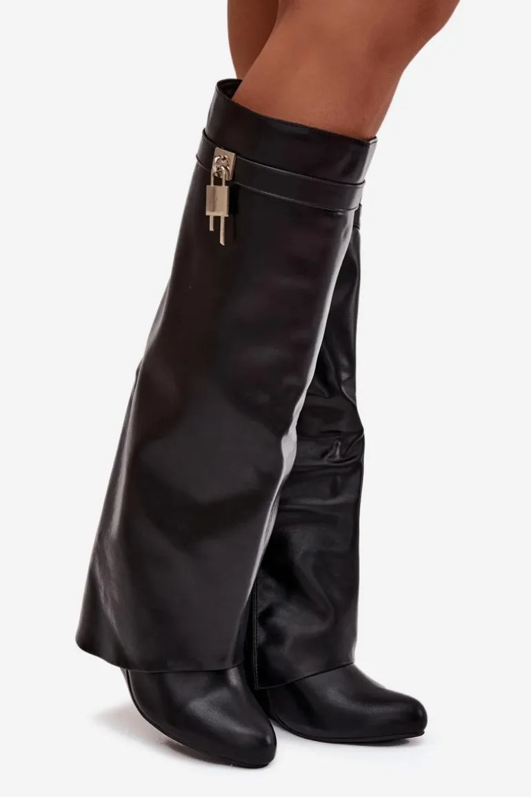 Kozaki damskie wykonane z eko skóry zamszu to idealne połączenie wygody i elegancji. Osadzone na koturnie. Model zapinany jest na praktyczny zamek, a efekt wywiniętej cholewki nadaje mu wyjątkowego charakteru. Całość uzupełnia pasek z ozdobnym detalem umieszczony na górze, który stanowi subtelny akcent dekoracyjny. To stylowe kozaki, które świetnie sprawdzą się zarówno w codziennych, jak i eleganckich stylizacjach. Przy wyborze rozmiaru prosimy sugerować się tabelą rozmiarów.